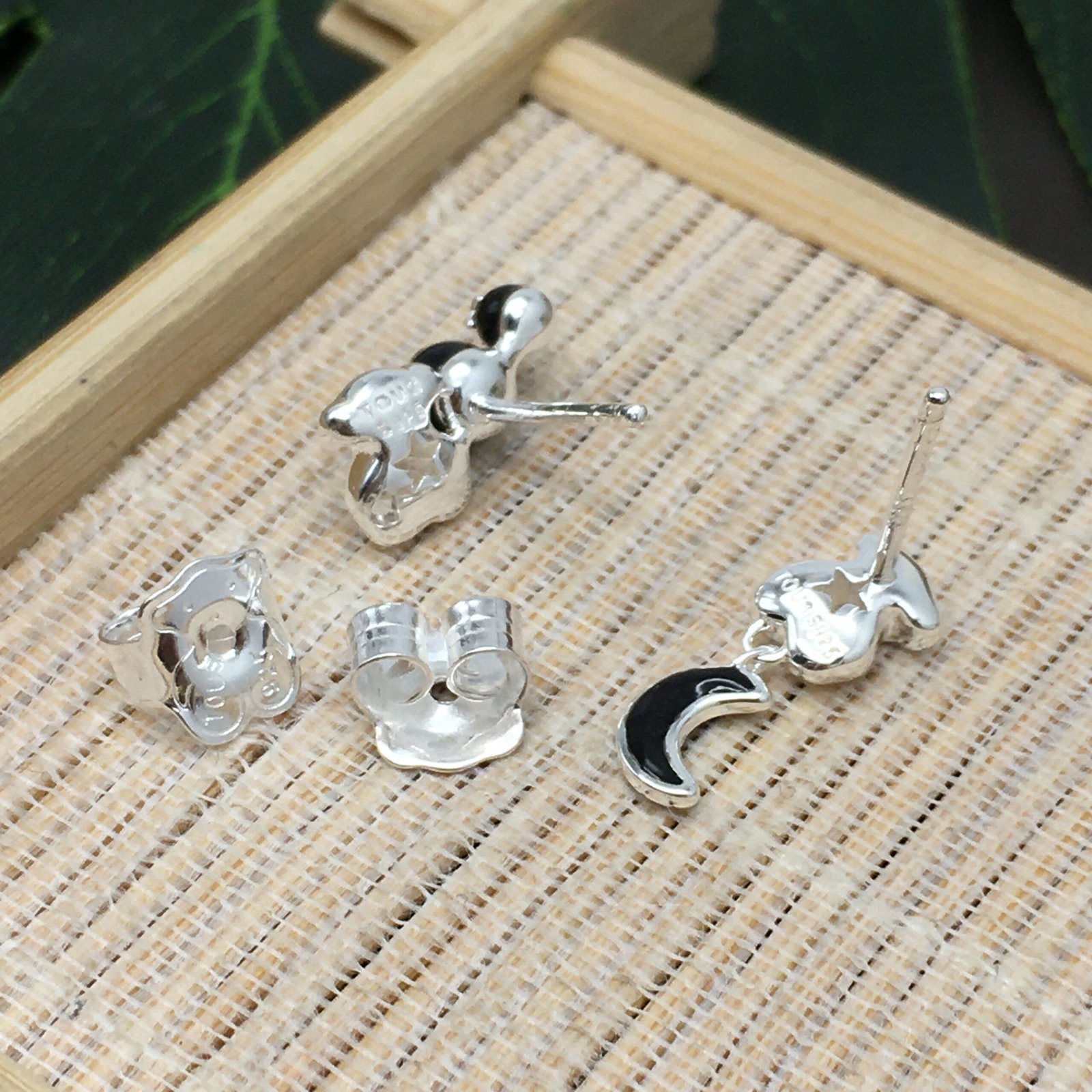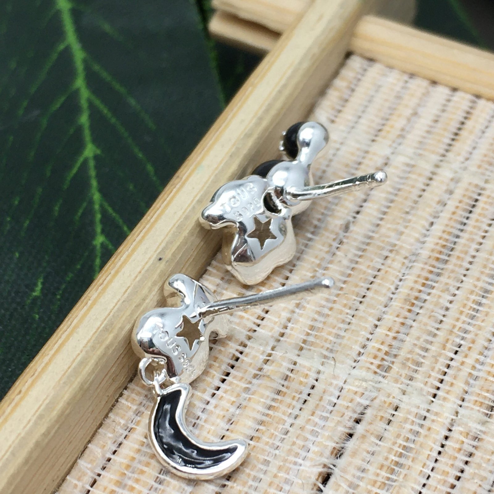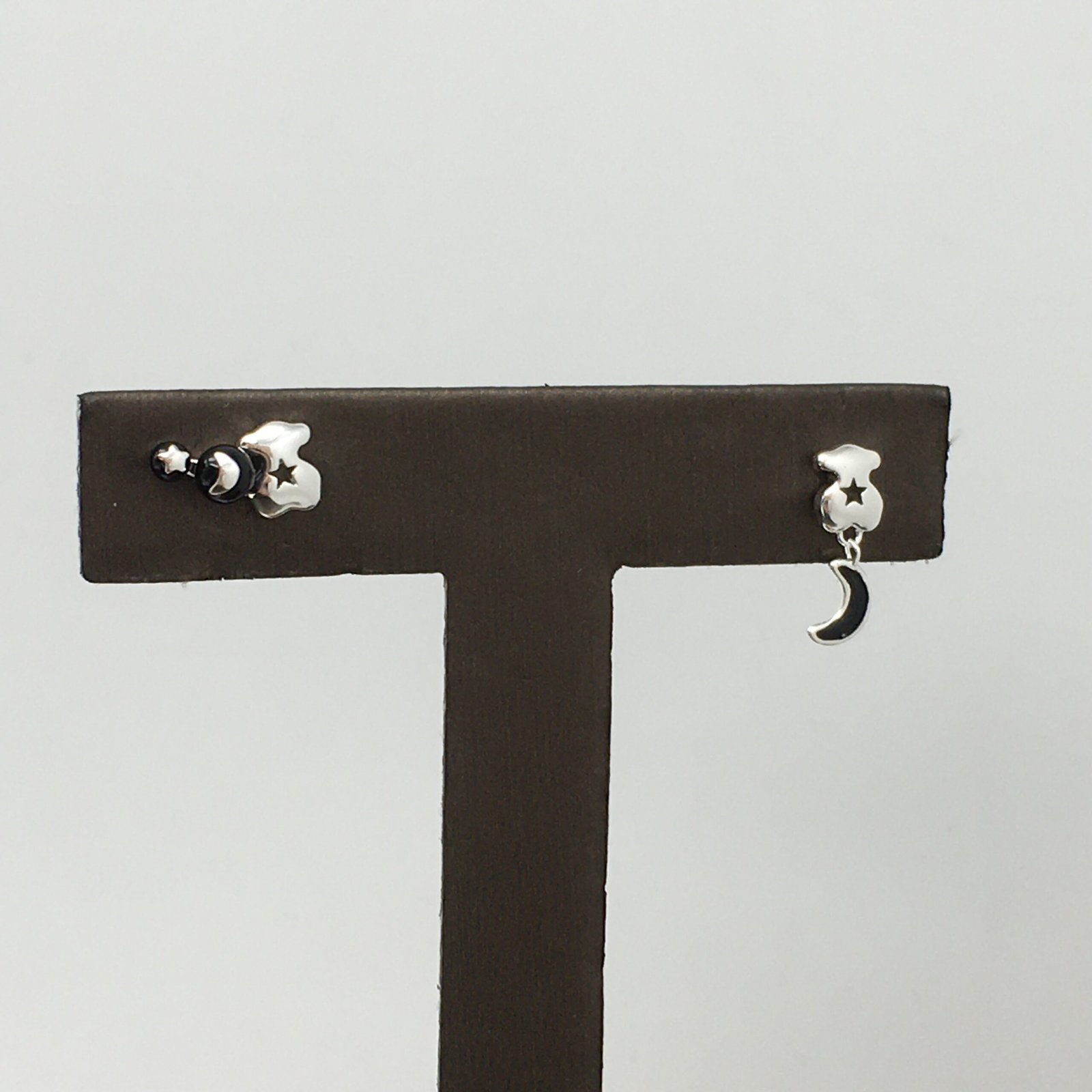 TOUS Magic Nature 7 mm bear earrings in sterling silver with 6 mm onyx moon and 3.5-4 mm onyx balls with moon and star. Push back. Production technique: Casting.