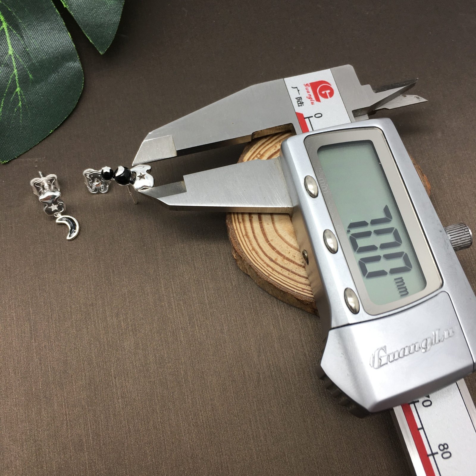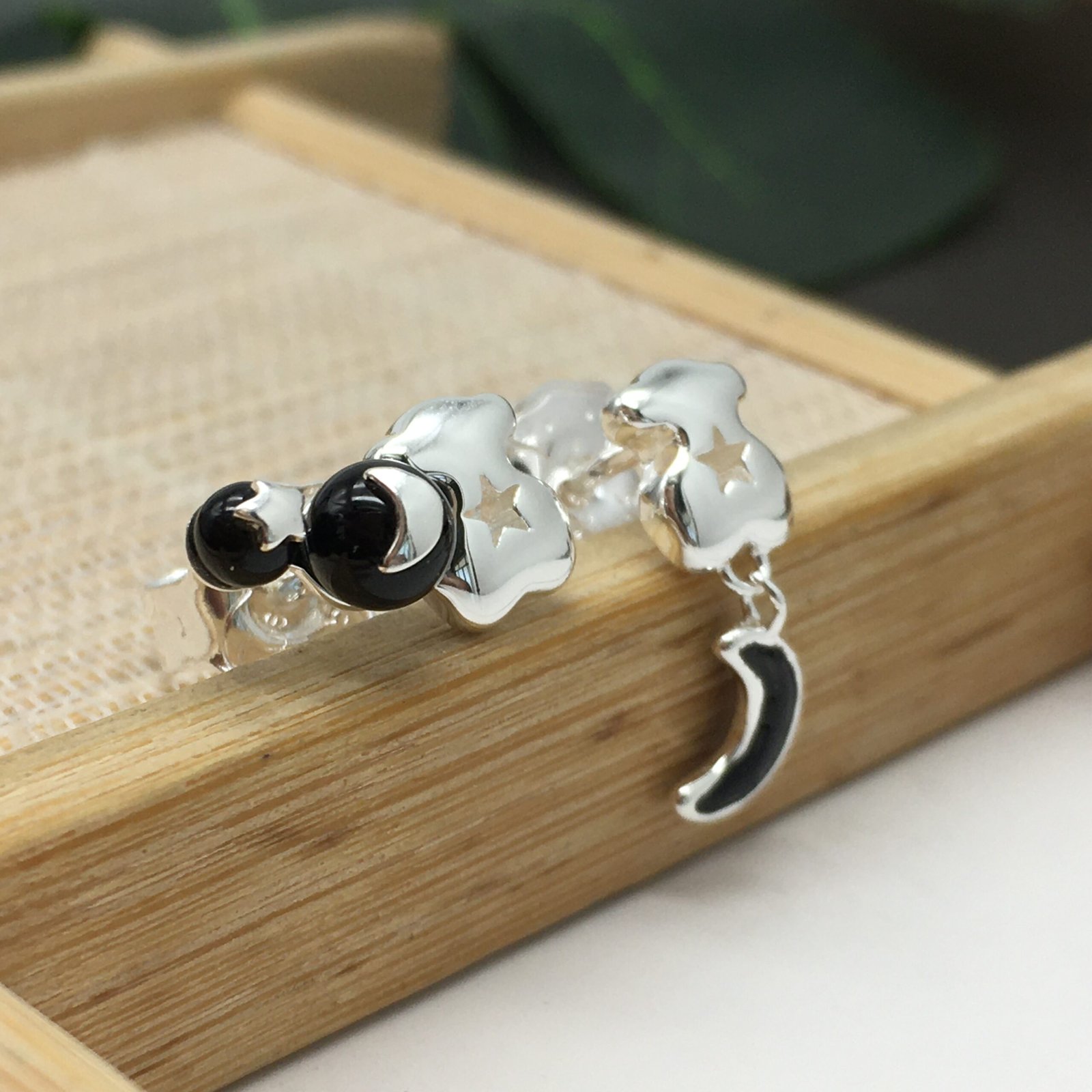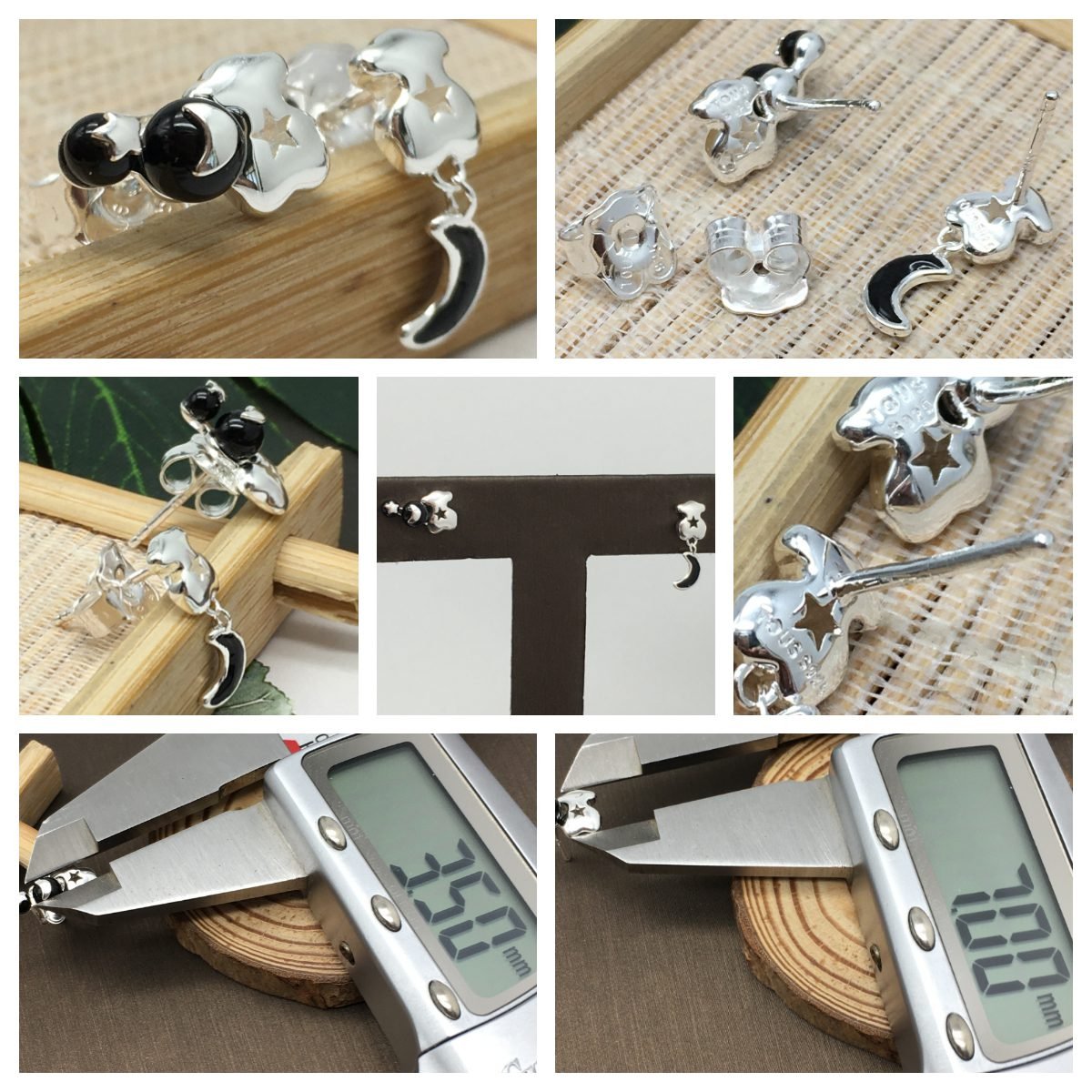 TOUS Magic Nature 7 mm bear earrings in sterling silver with 6 mm onyx moon and 3.5-4 mm onyx balls with moon and star. Push back. Production technique: Casting.