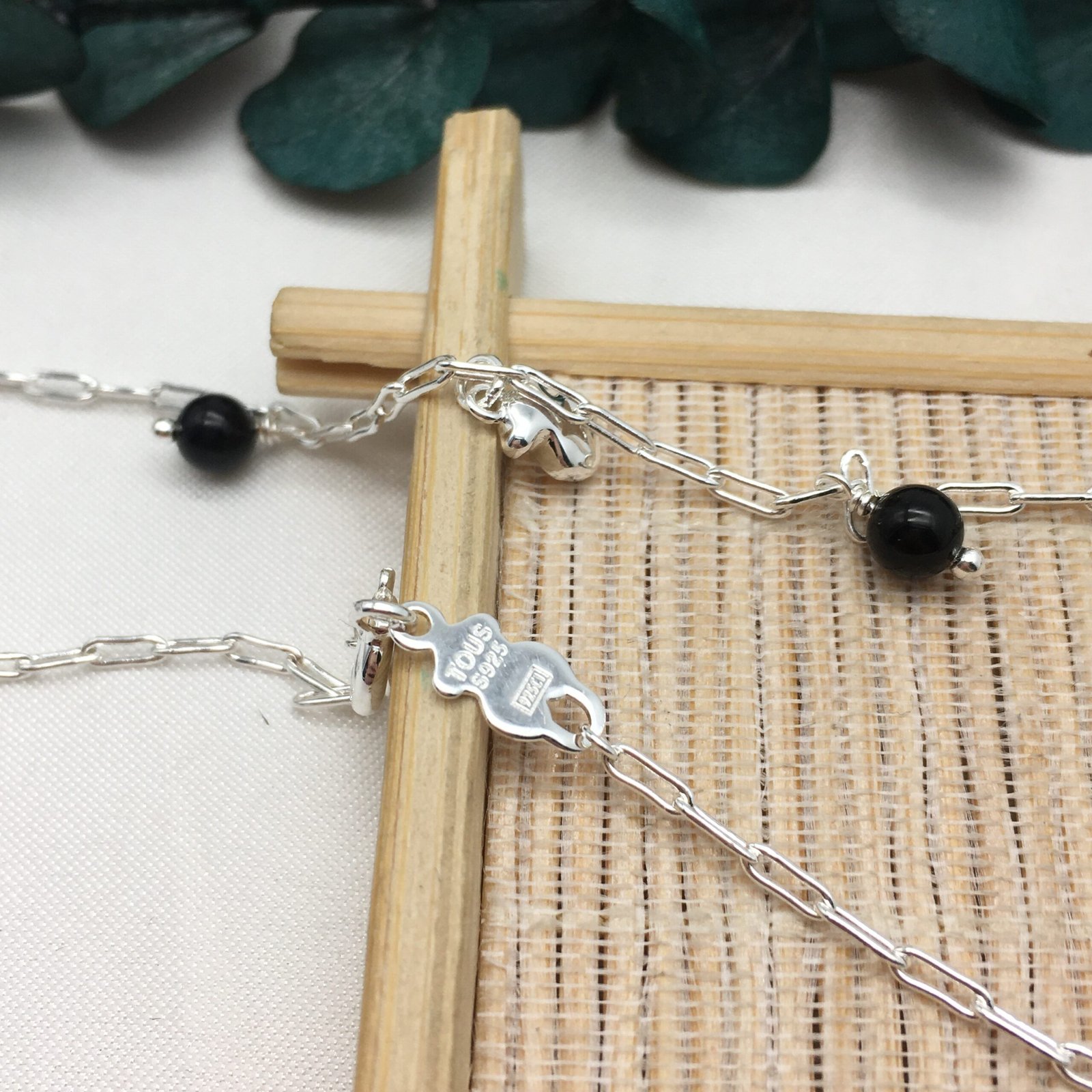 TOUS Magic Nature necklace with 6-8 mm star, moon and bear and four 4 mm onyx. Necklace length: 43 cm. Production technique: Casting.
