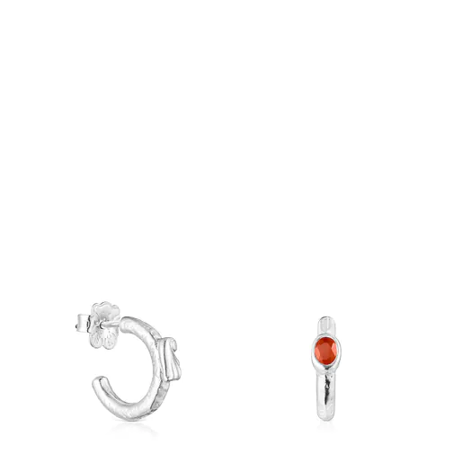 Discover the beauty and the irregular, abstract shapes found down in the depths of the ocean with the Oceaan Duna collection and these sterling silver hoop earrings with a faceted oval carnelian and an anemone.