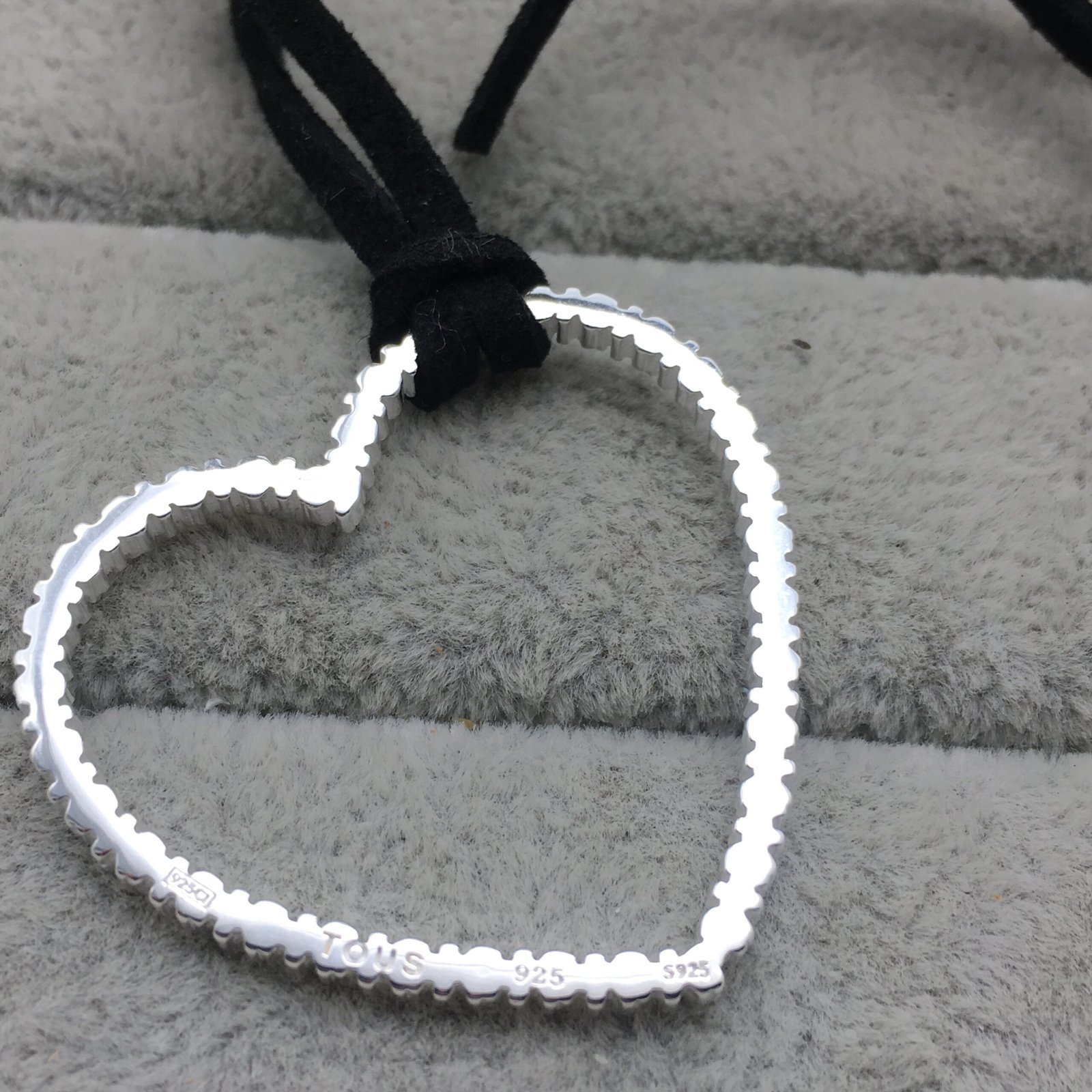 TOUS San Valentín heart necklace in sterling silver and black cord. Size: 3.2 cm. Length: 90 cm.