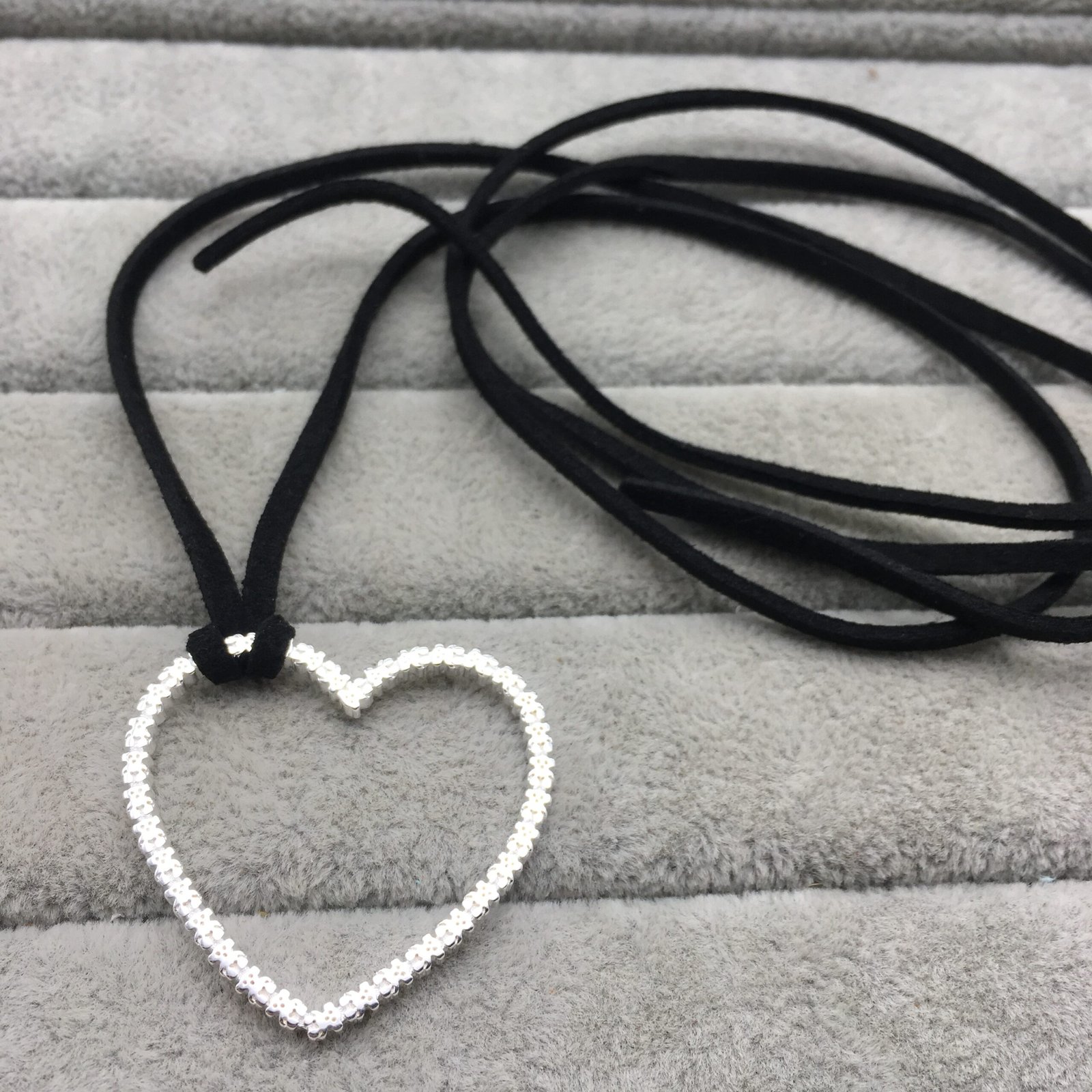 Be the first to review “Silver San Valentín heart Necklace with black Cord” Cancel reply
