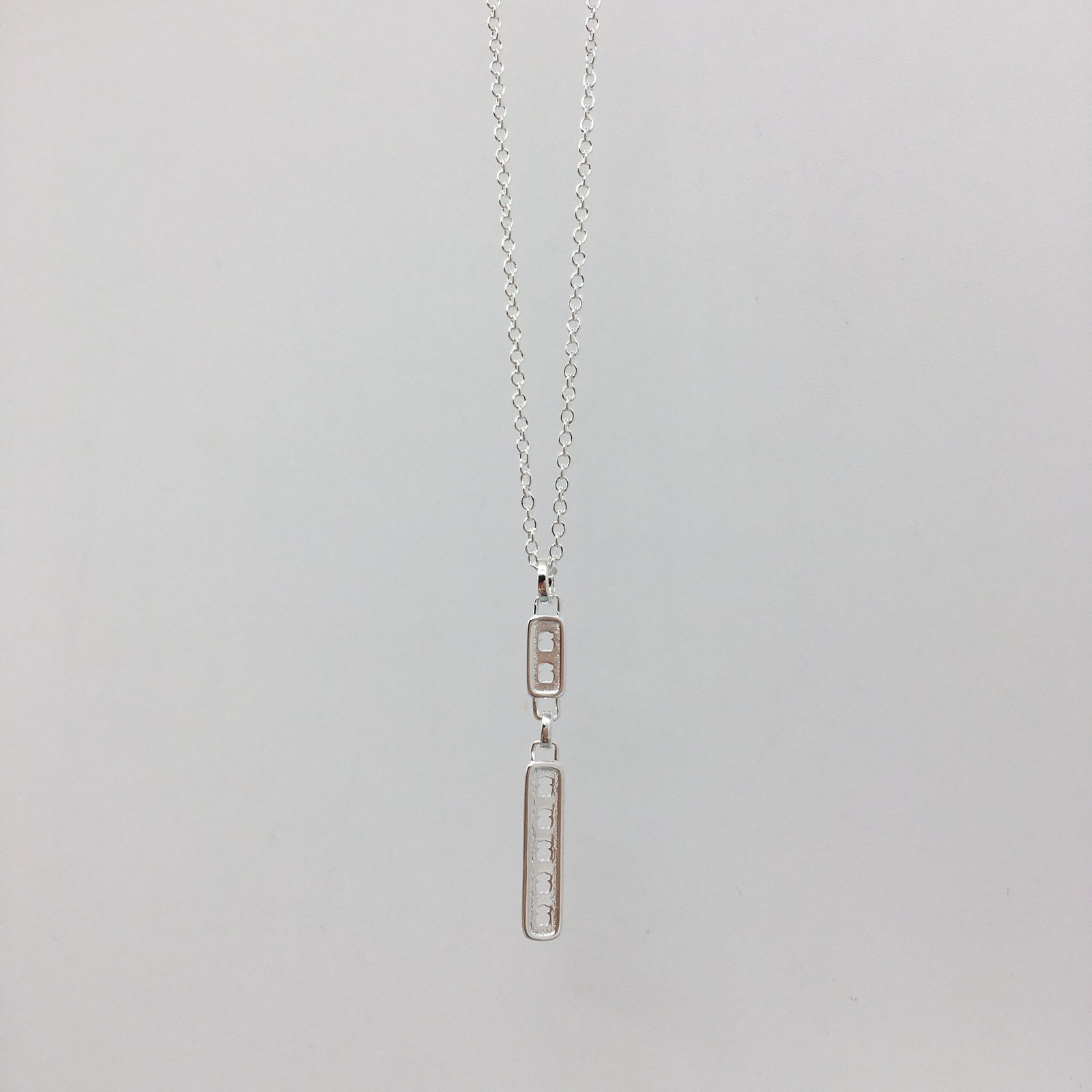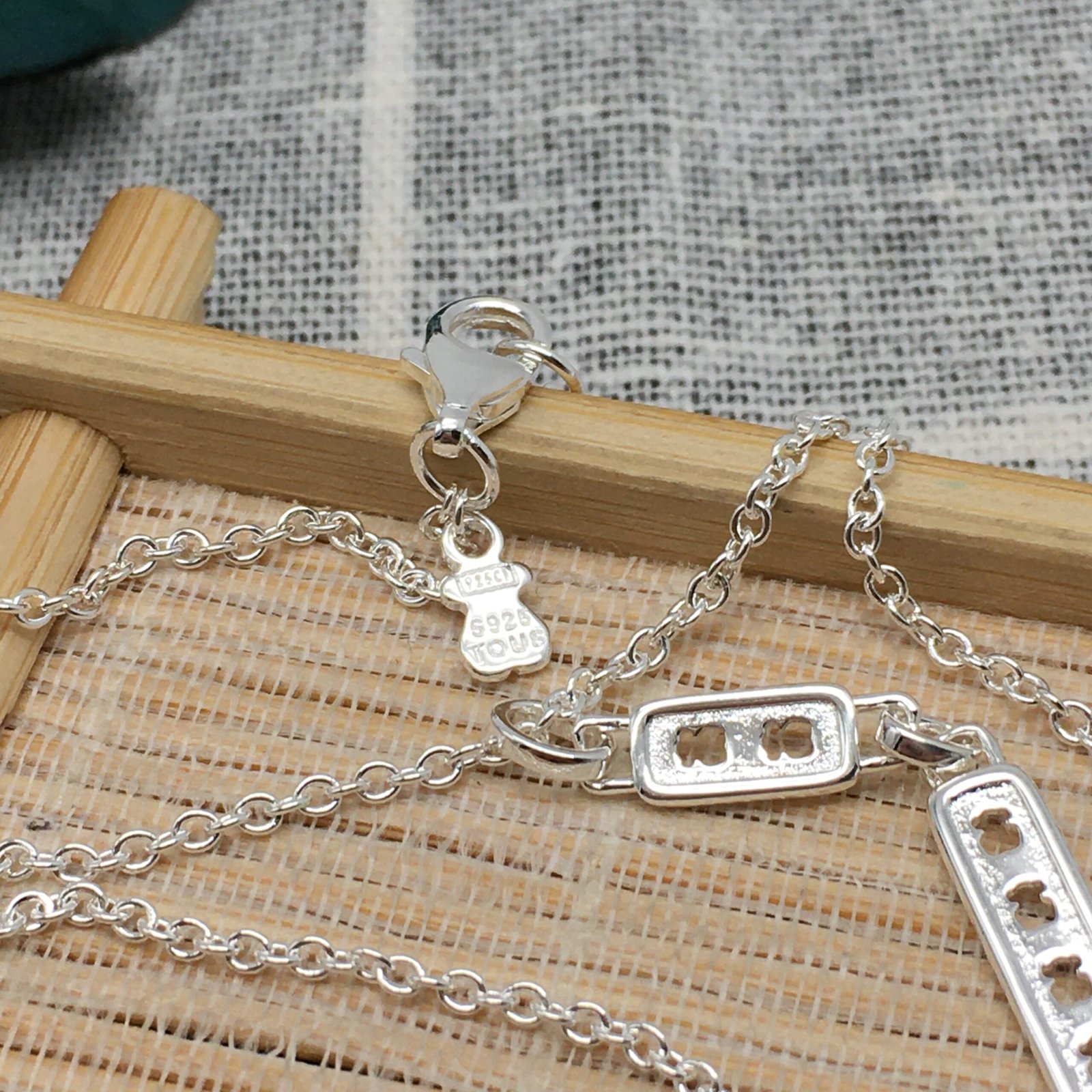 TOUS Bear Row necklace in sterling silver measuring 45 cm with rectangular plate containing perforated bear silhouettes.