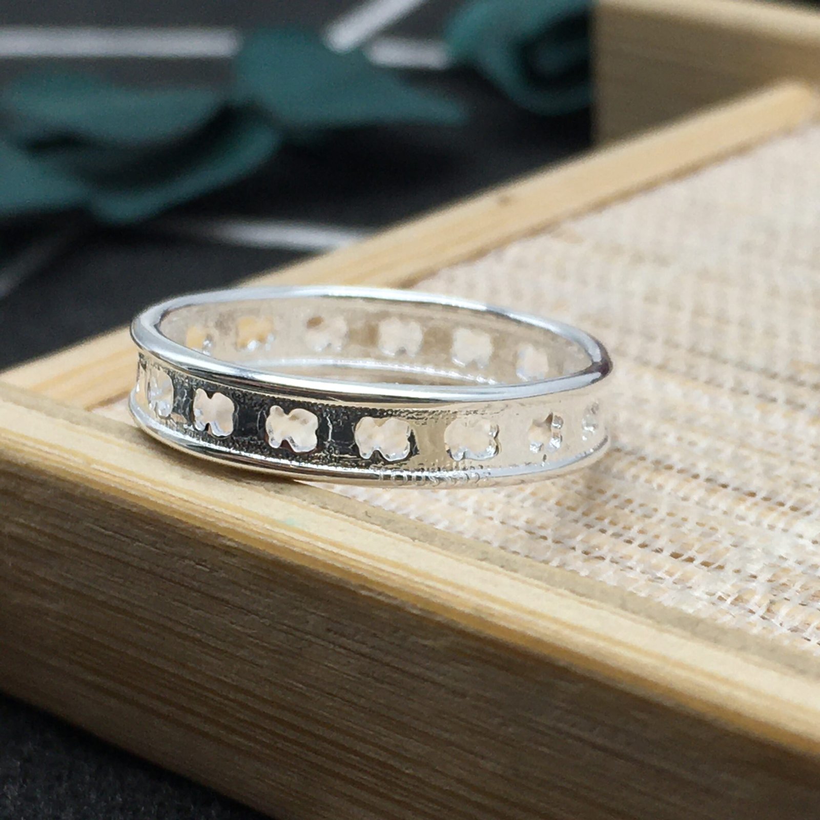 TOUS Bear Row ring in sterling silver with perforated bear-silhouette details all around the ring.