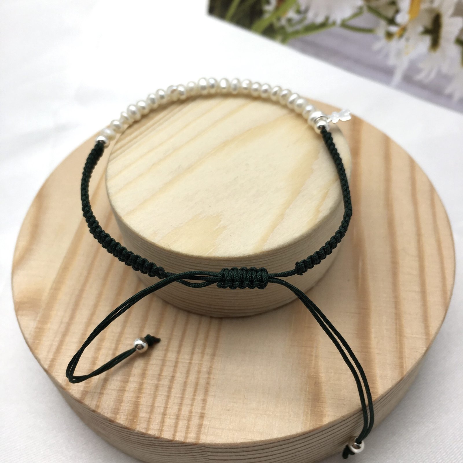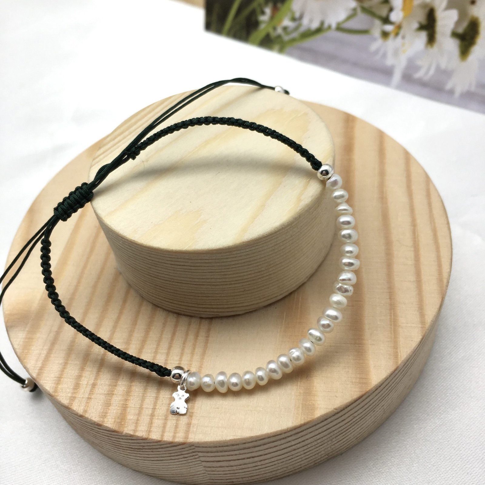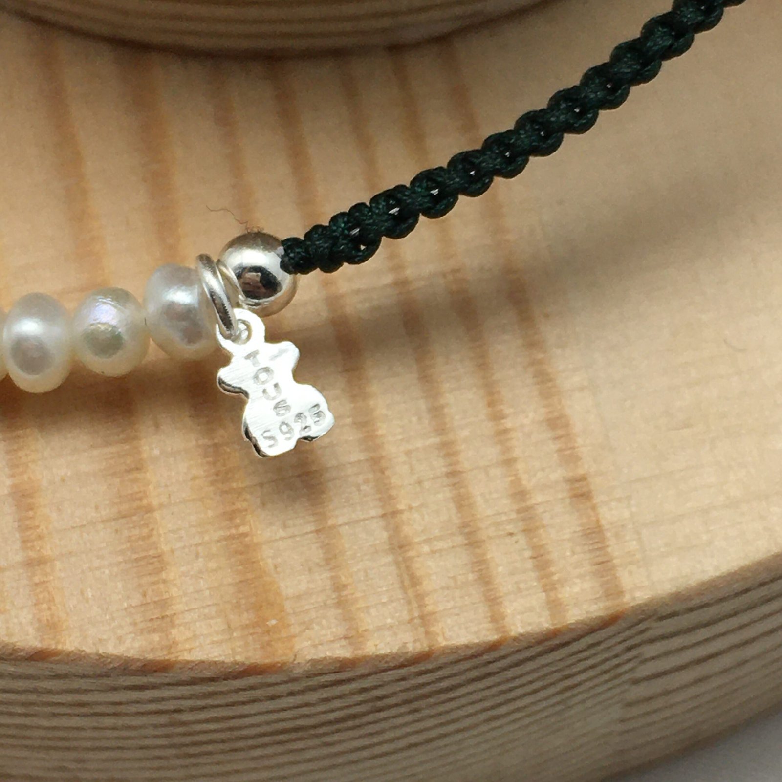 TOUS Color bracelet in 1.2-2mm pearls and sterling silver with green lace.