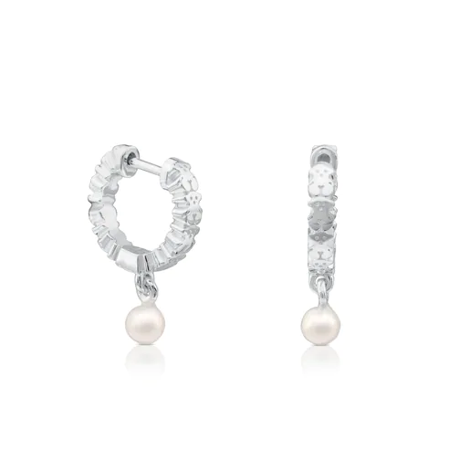 TOUS Straight hoop earrings in sterling silver with 0.45 cm cultured freshwater pearl. Push back.