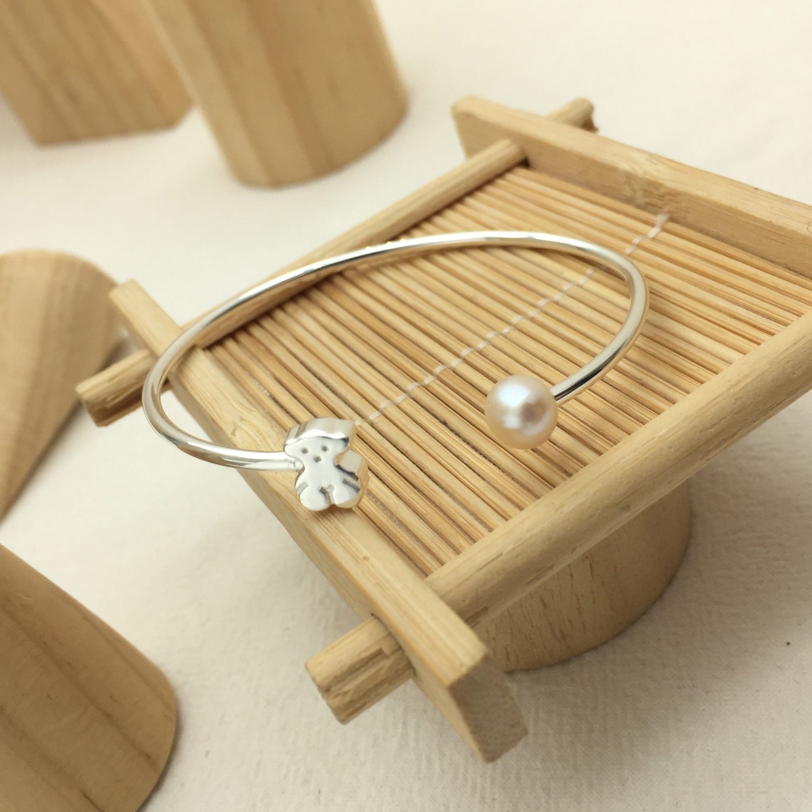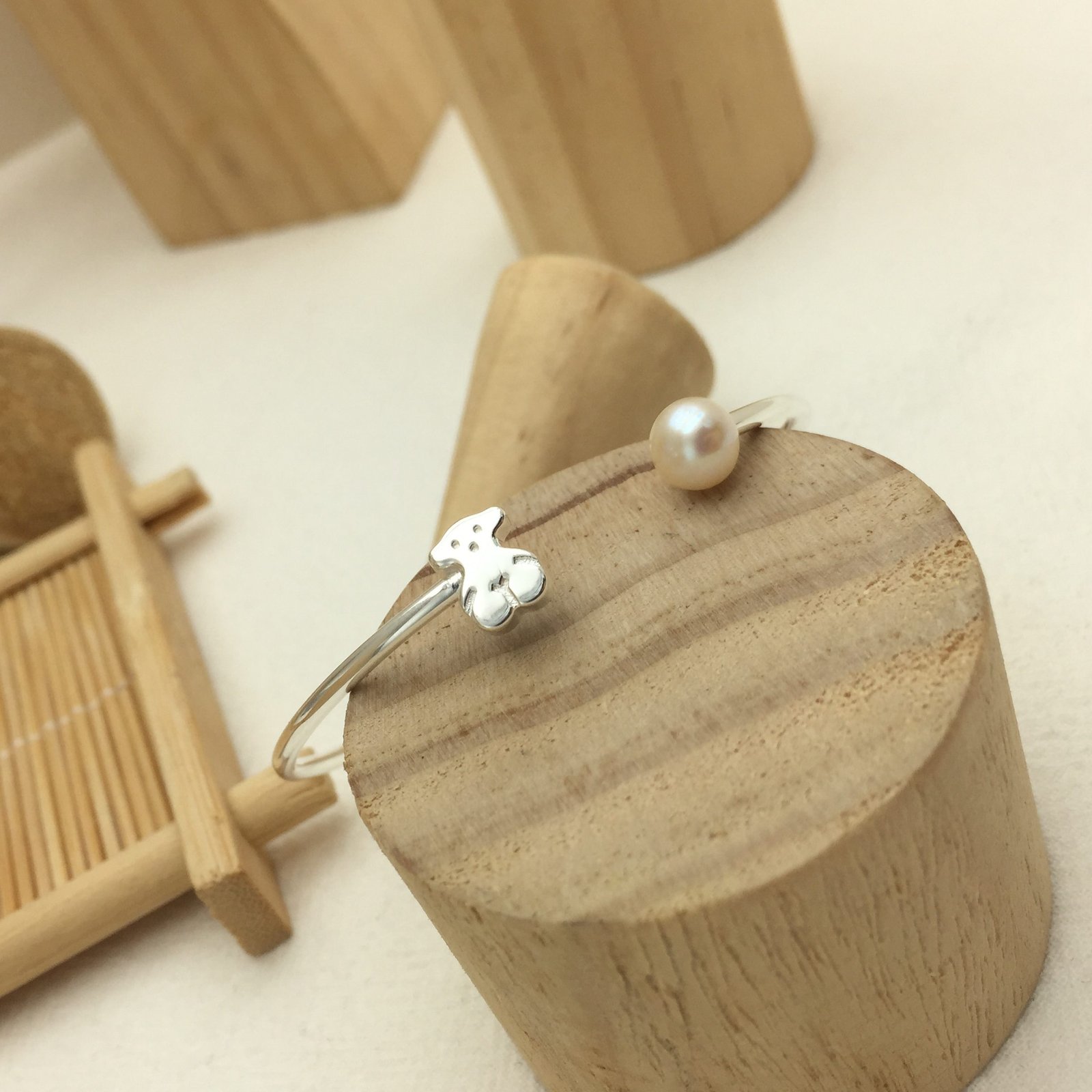 TOUS Sweet Dolls bangle in sterling silver with 0.65 cm pearl.