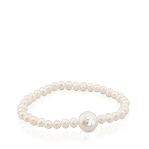 TOUS Sweet Dolls elastic bracelet in sterling silver with pearl. Size: 1cm.