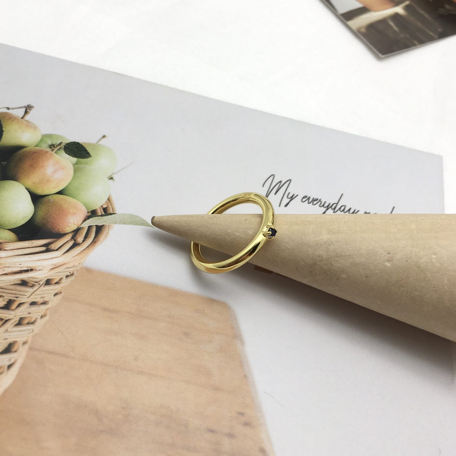 TOUS Ring Mix set of rings in silver vermeil with Ø-2-mm blue sapphire. Sterling silver plated with 18kt gold with a thickness of 3 to 5 microns and with no other metal between them. Production technique: Smelting.