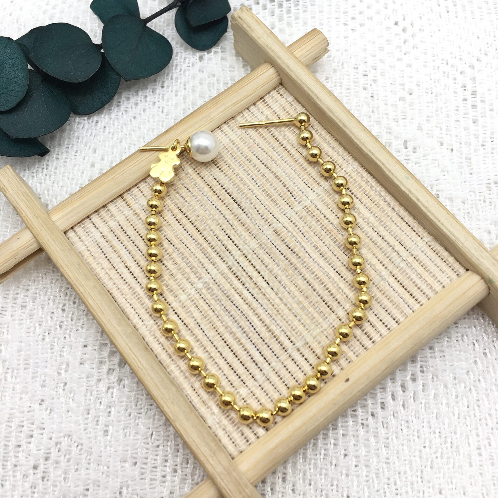 TOUS Gloss asymmetric earrings in silver vermeil; one 14 cm long with 3 mm ball chain and 4.5 mm bear on the end;