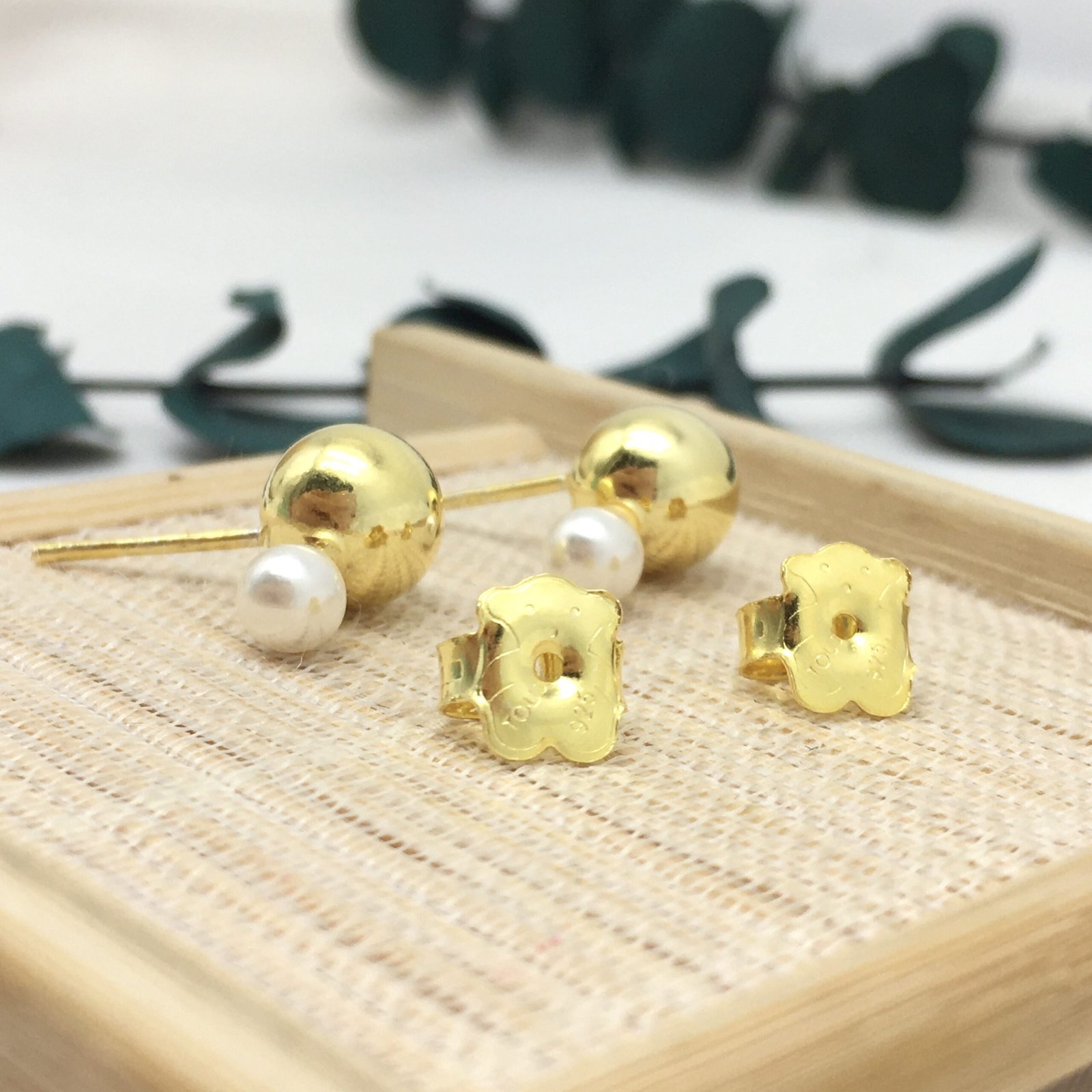 TOUS Gloss earrings in silver vermeil with 8 mm ball and 4 mm cultured freshwater pearl. Push back.