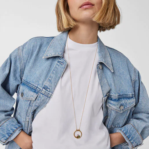 TOUS Hold pendant in silver vermeil with faceted round amethyst, citrine and chrome diopside measuring 5 mm. Size: 28 mm. Piece compatible with Hold items.