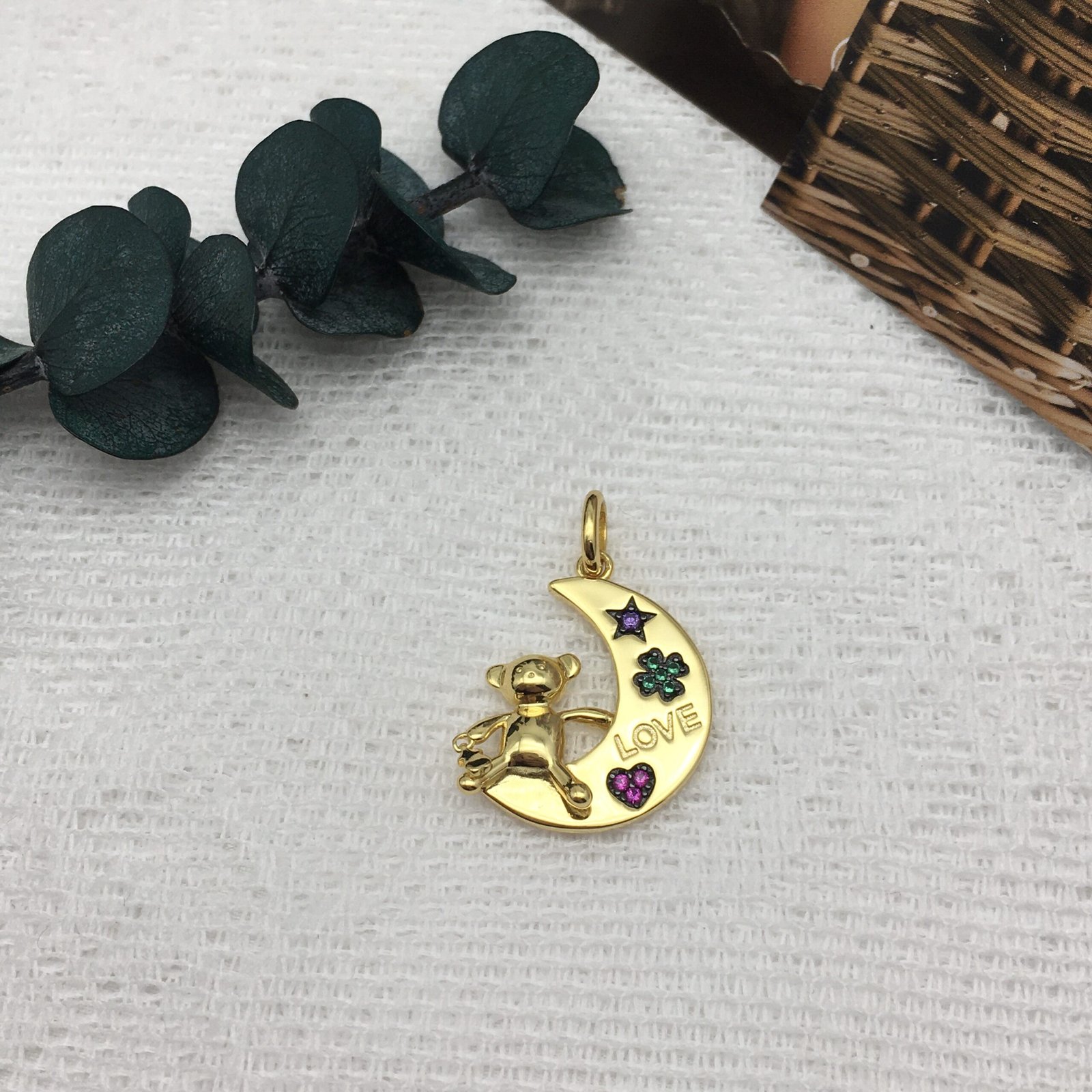 Show off all your favorite charms on one piece of jewelry. Try the bear, moon or heart on this pendant in silver vermeil with gemstones from the Teddy Bear collection. Are you ready to shine?