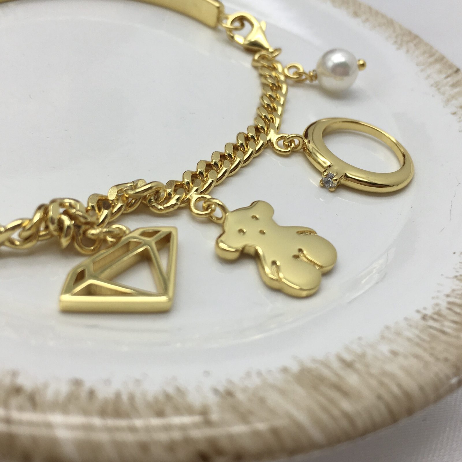 We pay homage to our trade and our master jewelers. Together with elements such as pearls, diamonds and our sweet bear, the tools of our trade take center stage in pieces of jewelry with charms.
