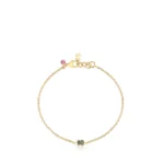 TOUS New Motif bracelet in silver vermeil with a 4.6 mm x 3.8 mm chrome diopside bear and a treated ruby measuring Ø3 mm. Bracelet length: 17.5 cm.