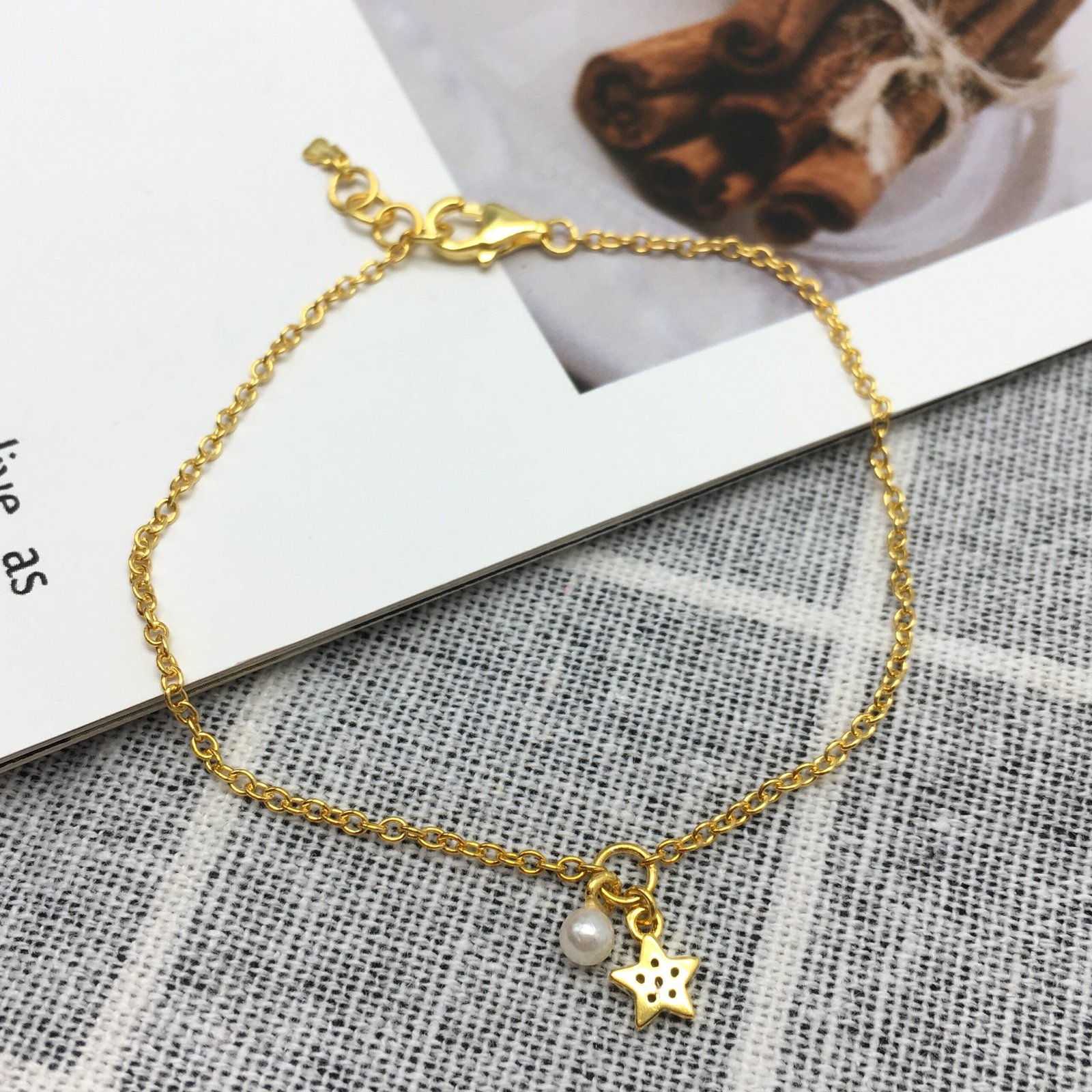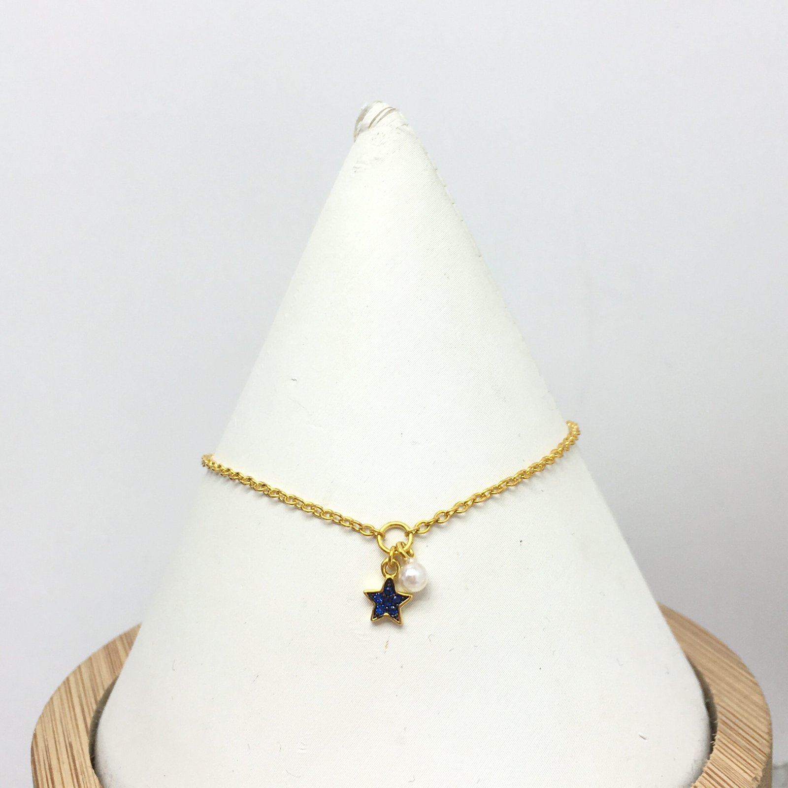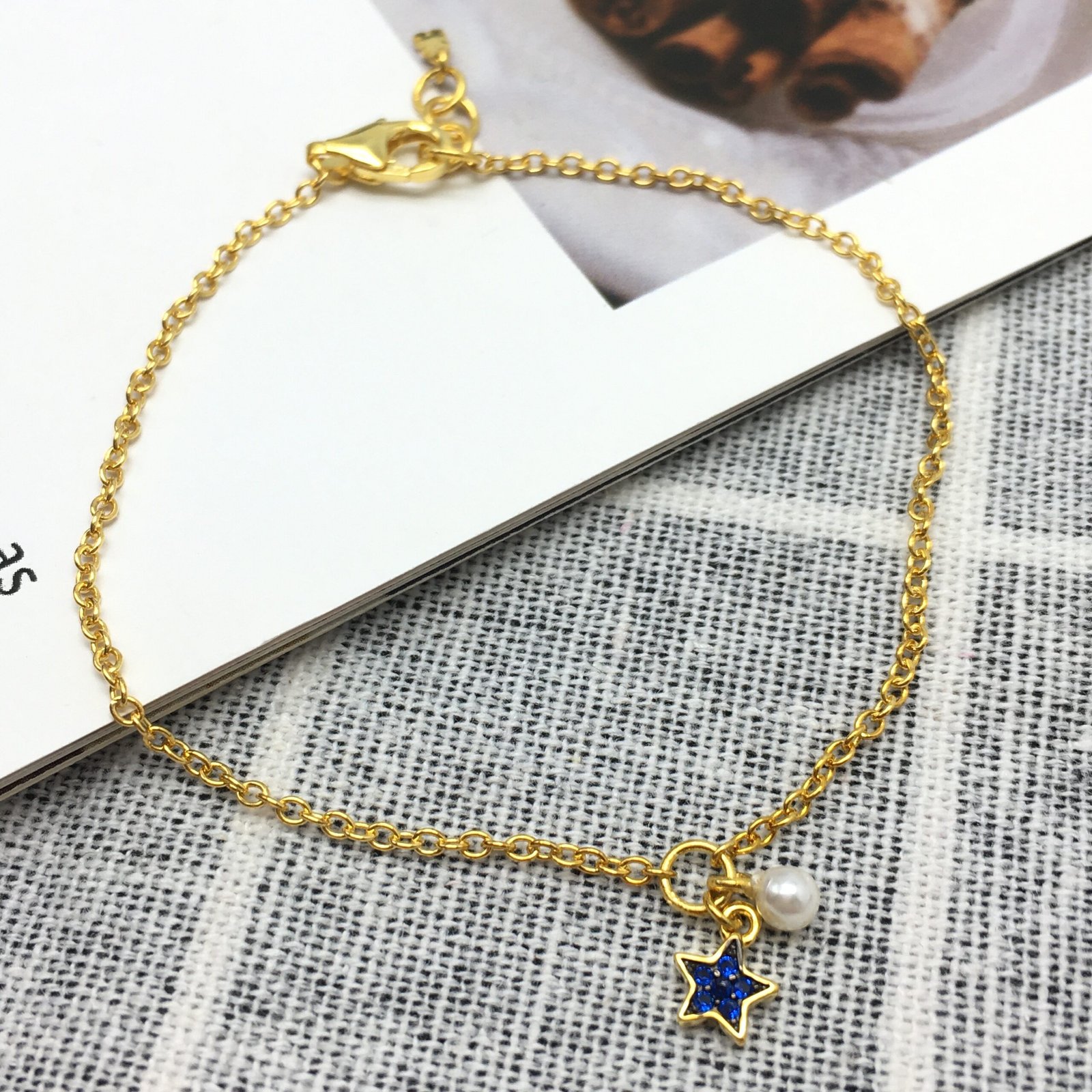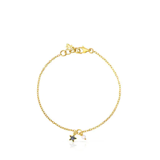 TOUS New Motif bracelet in silver vermeil with a 5.1 mm x 5.32 mm blue sapphire star and a pearl measuring Ø3 mm. Bracelet length: 17.5 cm.