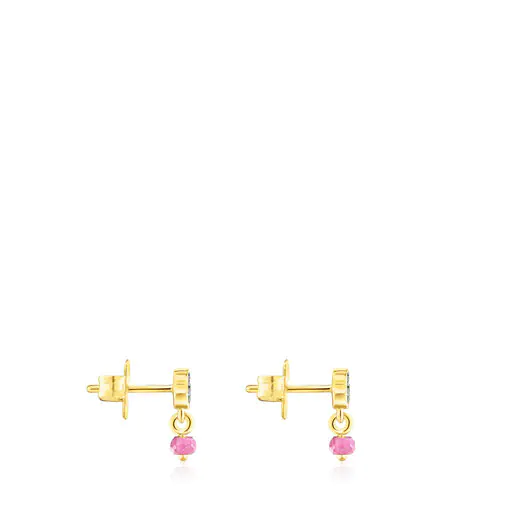 TOUS New Motif earrings in silver vermeil with a chrome diopside bear motif and a treated ruby detail. Push back. Size of bear: 4.6 mm x 3.8 mm.