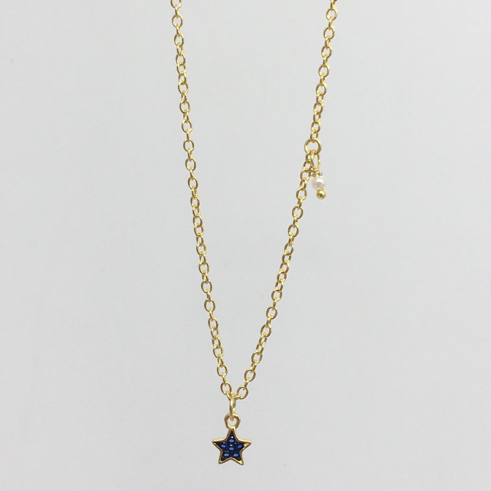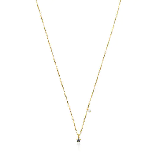 TOUS New Motif necklace in silver vermeil with a 5 mm star motif with blue sapphires and a pearl measuring Ø3 mm. Total necklace length: 45 cm.