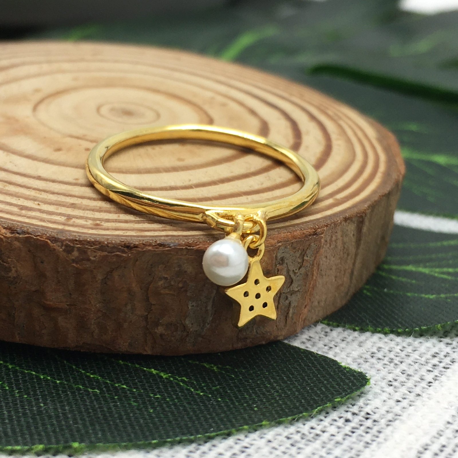 TOUS New Motif ring in silver vermeil with a 5.1 mm x 5.32 mm blue sapphire star and a pearl measuring Ø3 mm. Ring thickness: 1.5 mm.