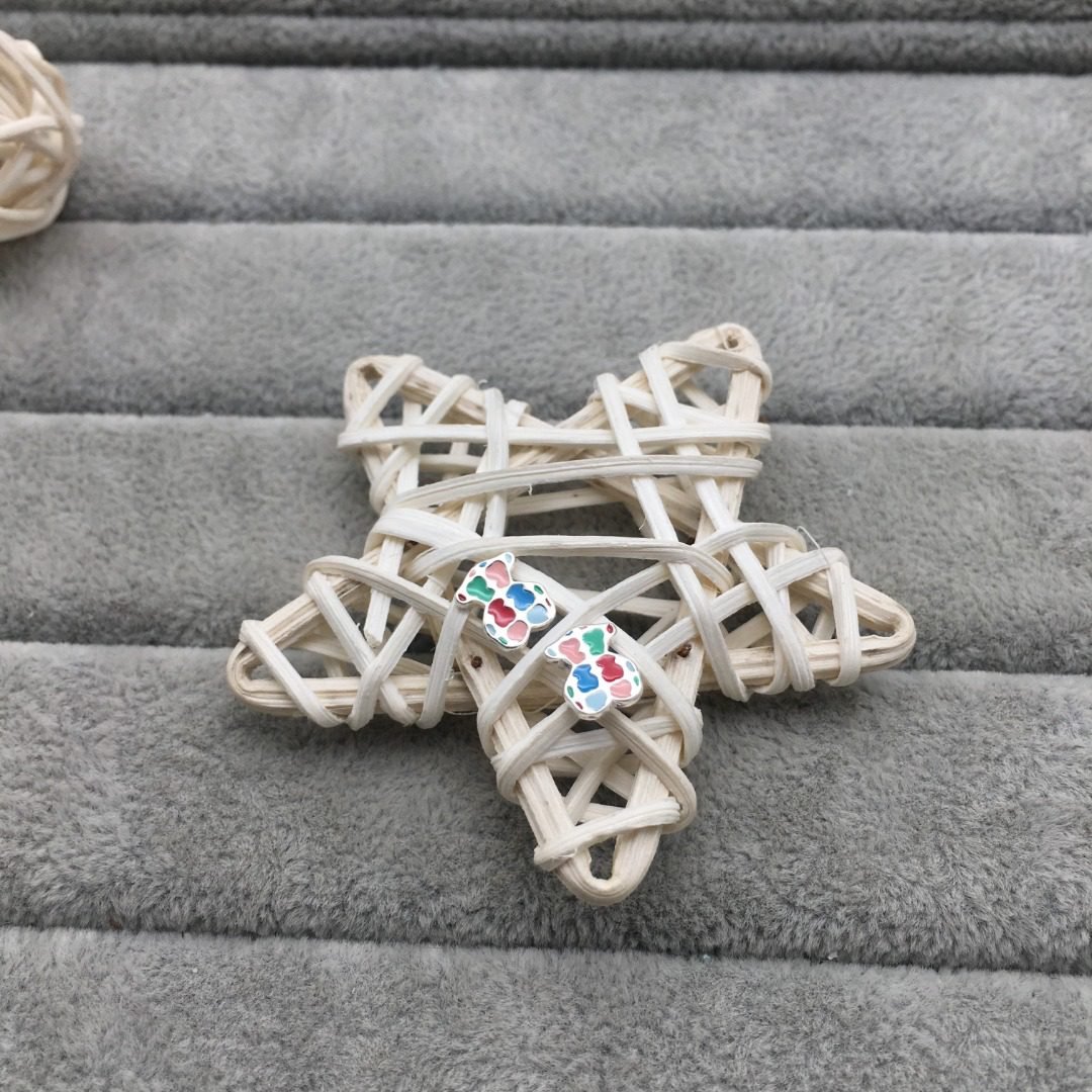TOUS Tartan earrings in sterling silver with colored enamel bear print. Pushback. Size: 0.8 cm.