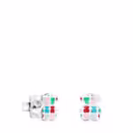 TOUS Tartan earrings in sterling silver with colored enamel bear print. Pushback. Size: 0.8 cm.
