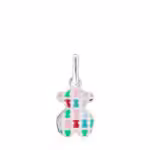 TOUS Tartan pendant in sterling silver with colored enamel bear print. Size: 1.2 cm.