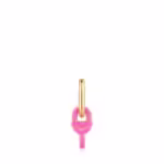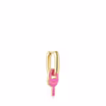 TOUS MANIFESTO single hoop earring with 18kt gold plating over silver and pendant charm with fuchsia-colored enamel. Earring size: 12.4 x 6.5 mm.