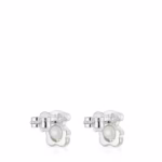 Small sterling silver bear earrings with cultured pearls in the center of the motif  I-Bear. Size of the cultured pearls: 4-4.5 mm. Size of earrings: 10 mm. Push back.