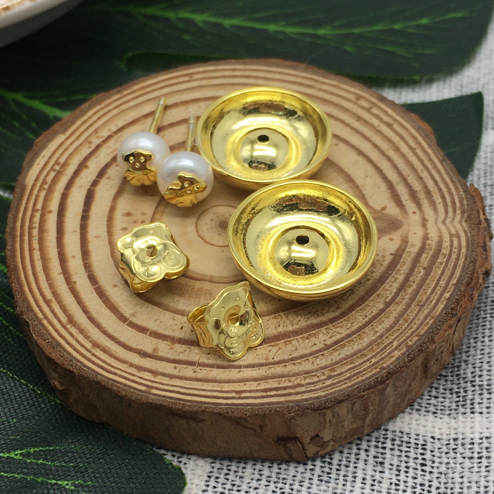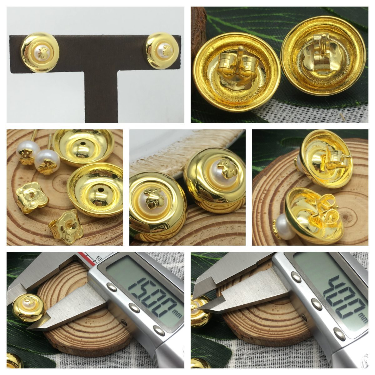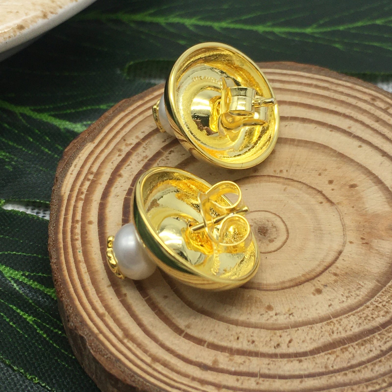 TOUS Basics disc earrings in silver vermeil with half-round 6.1-6.2 mm cultured freshwater pearl with 4.5 mm bear. Earrings size: 1.5 cm.