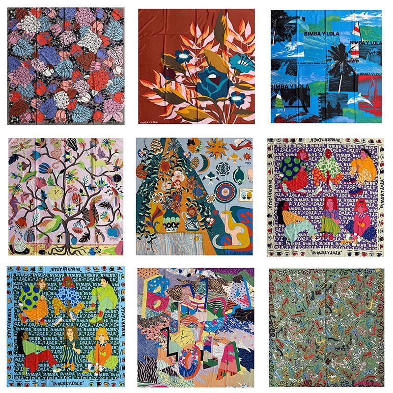 2025 new Spanish niche women’s various personalized printed pattern scarves and large square scarves, suitable for daily travel and gatherings