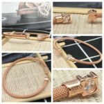 Treating materials in a creative way. That’s how to achieve the marvelous rose tone of the steel in this bracelet.
