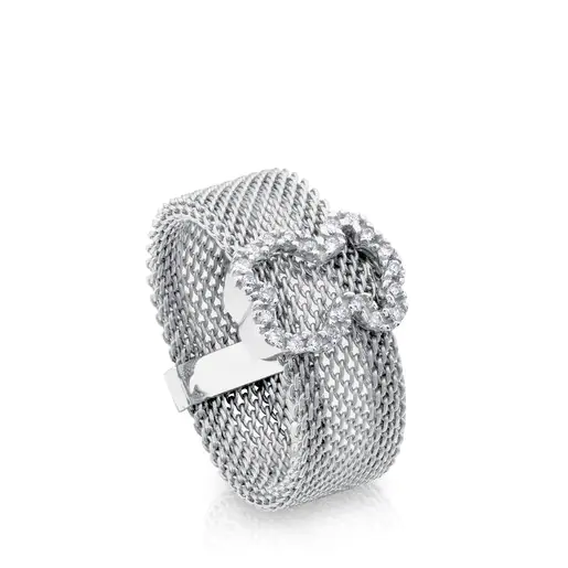 IP black stainless steel and 18kt white gold TOUS Icon Mesh ring with diamonds. Total carat weight: 0,20ct. Motif: 1,1cm.