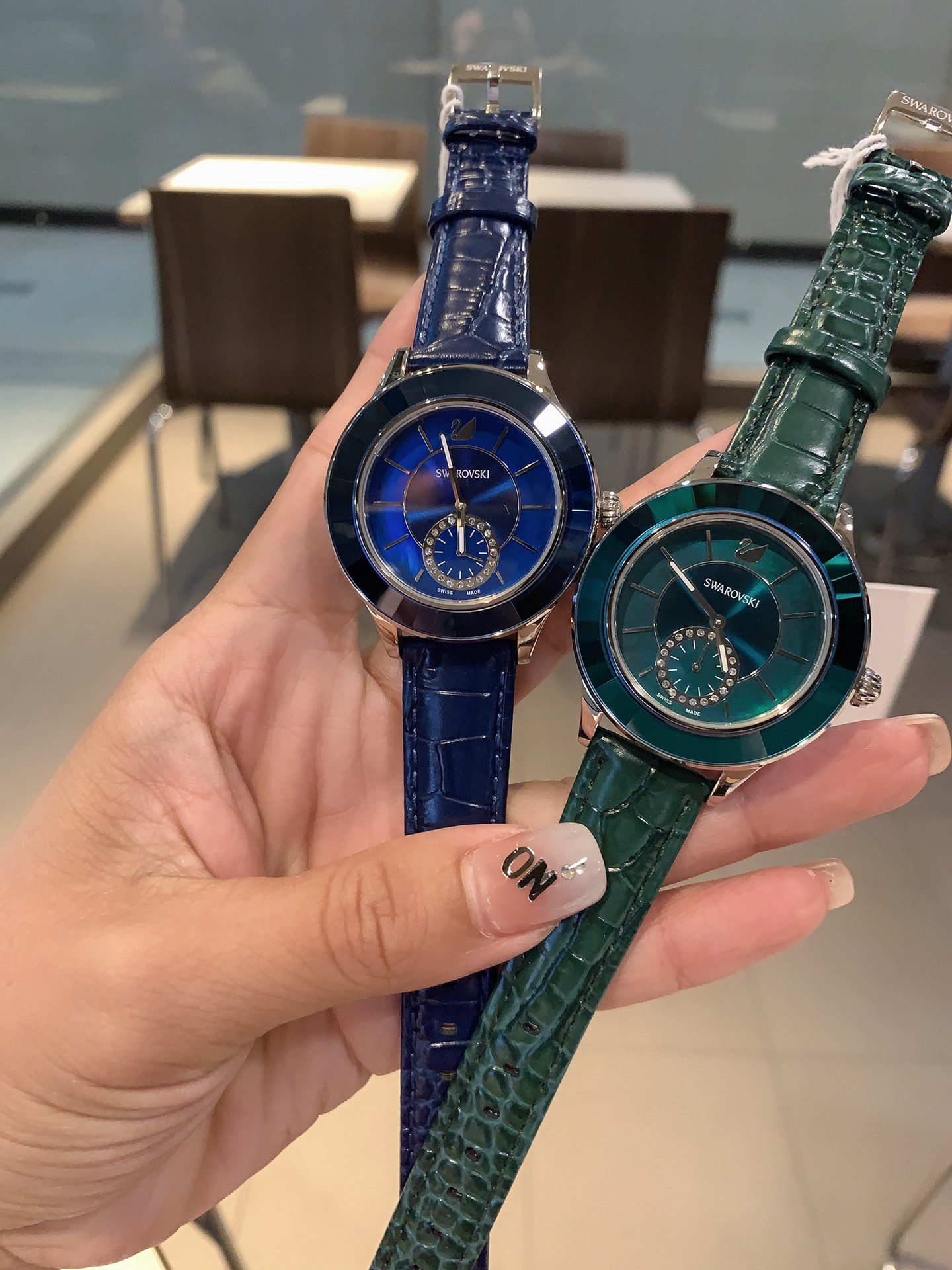 This stylish and elegant watch, featuring a stunning blend of green and rose gold, is a truly dazzling statement piece. Leveraging world-class crystal cutting techniques, Swarovski produces crystal pieces of unparalleled beauty. Swarovski crystal watches showcase this exceptional craftsmanship to the fullest, showcasing the brand’s feminine charm. The exquisite rose gold case and indices echo the design of the brand’s jewelry collection. A small seconds counter is framed by a clear pavé crystal ring, while the swan logo is adorned at 12 o’clock. The pavé crystal ring, adding a touch of glamour to the dial, showcases Swarovski’s renowned sparkle.