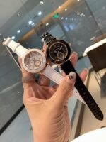This stylish and elegant watch, featuring a stunning blend of green and rose gold, is a truly dazzling statement piece. Leveraging world-class crystal cutting techniques, Swarovski produces crystal pieces of unparalleled beauty. Swarovski crystal watches showcase this exceptional craftsmanship to the fullest, showcasing the brand’s feminine charm. The exquisite rose gold case and indices echo the design of the brand’s jewelry collection. A small seconds counter is framed by a clear pavé crystal ring, while the swan logo is adorned at 12 o’clock. The pavé crystal ring, adding a touch of glamour to the dial, showcases Swarovski’s renowned sparkle.