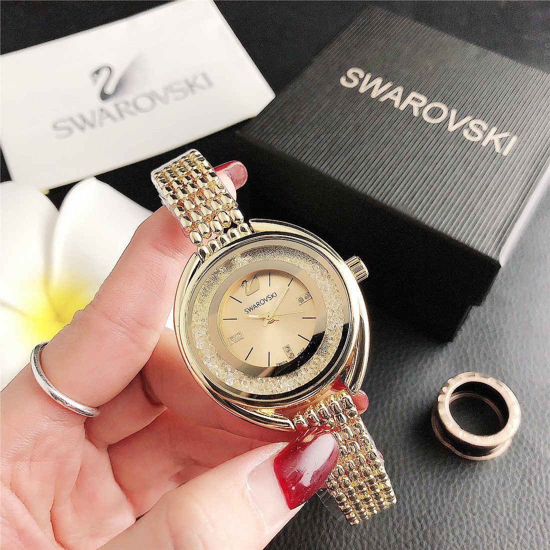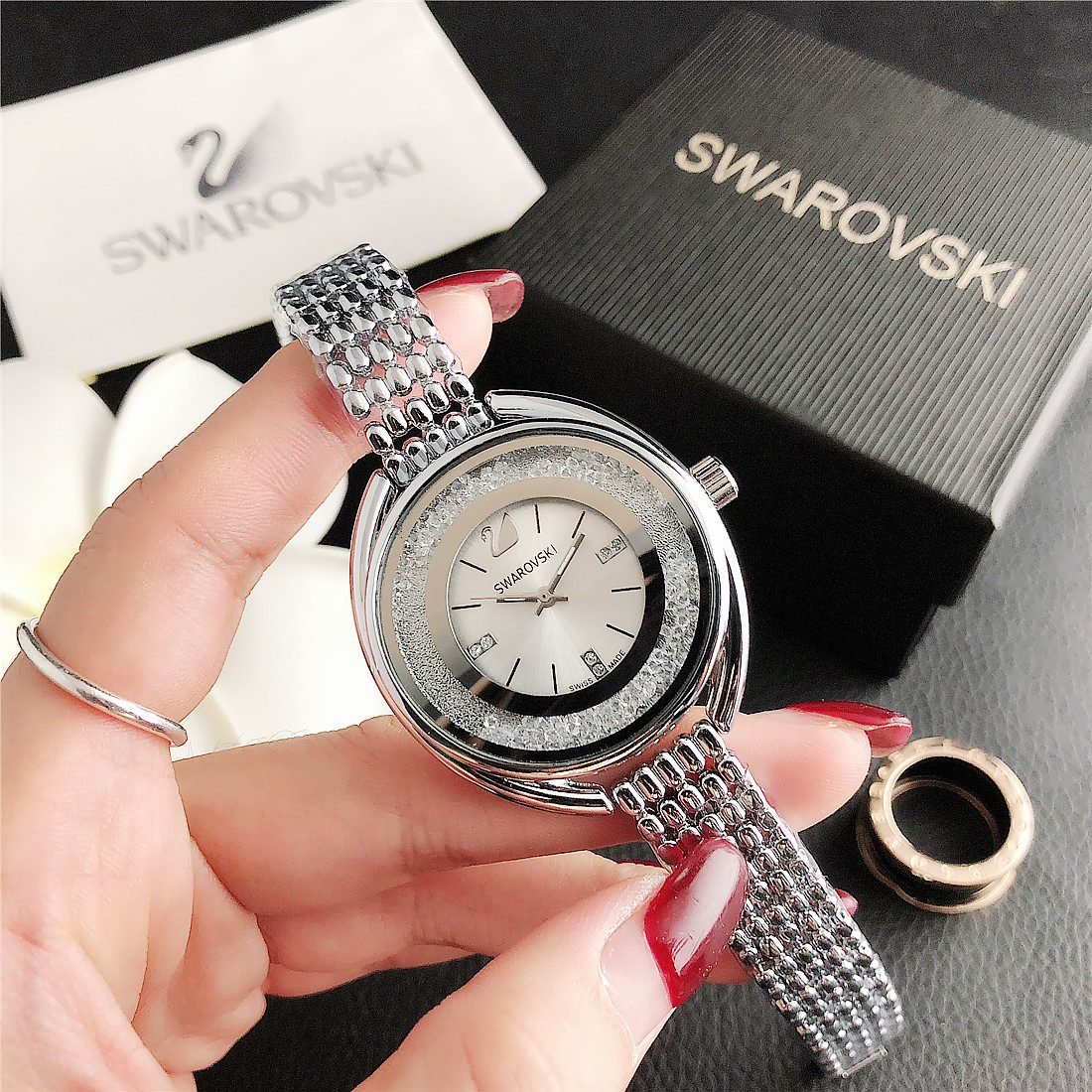 Be the first to review “SWAROVSKI watch circular minimalist dial with metal steel strip” Cancel reply