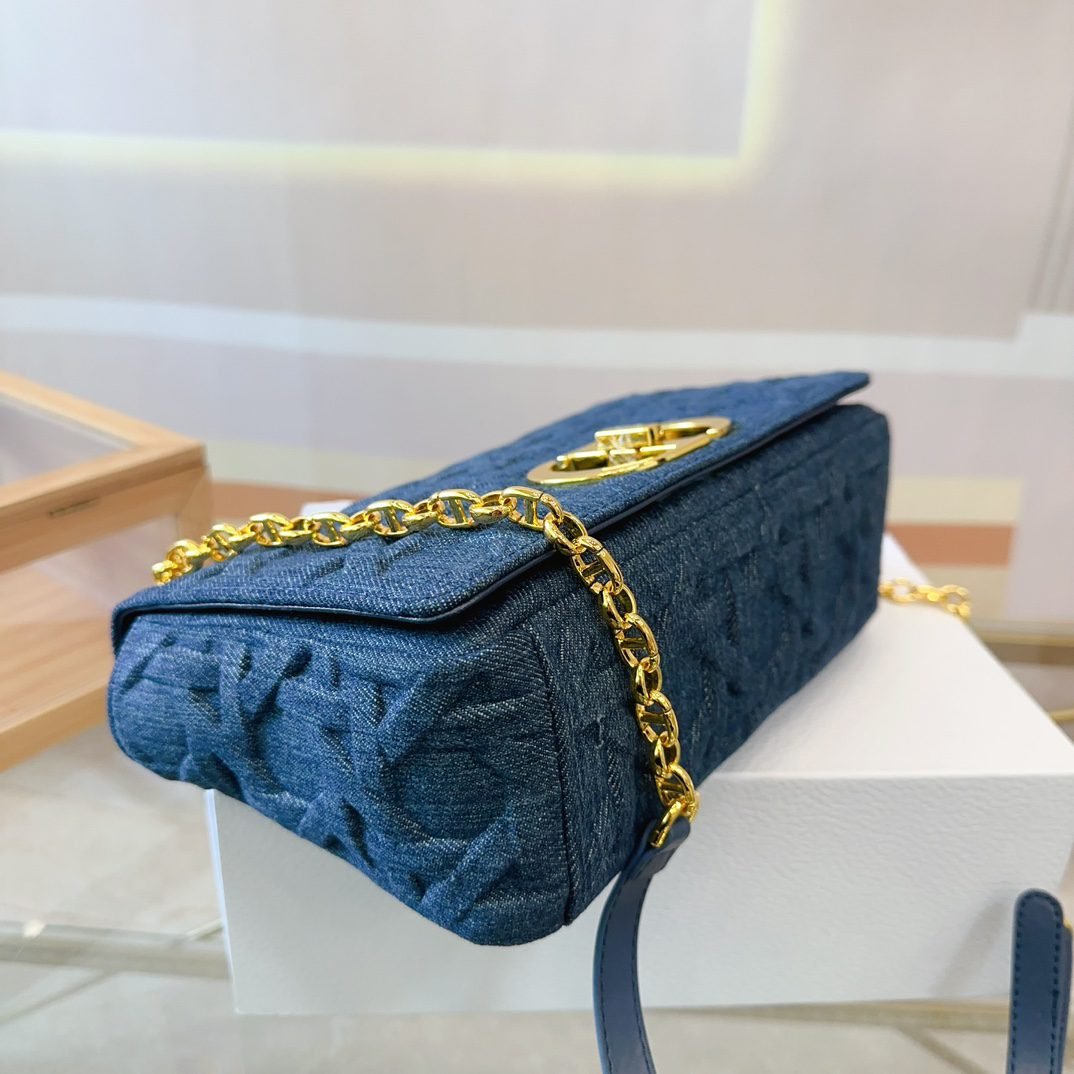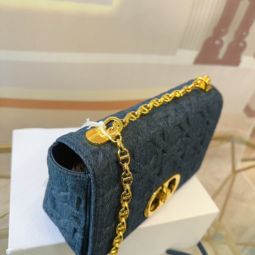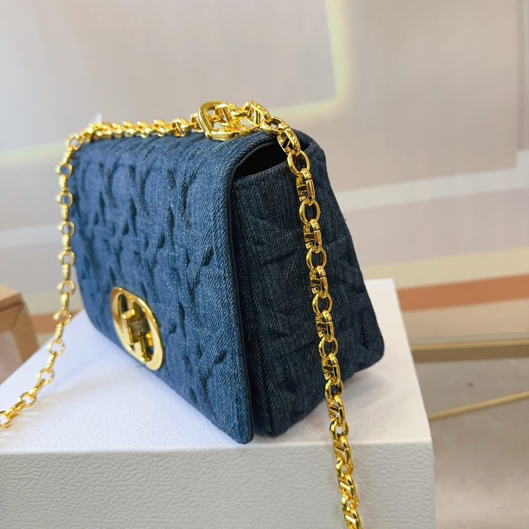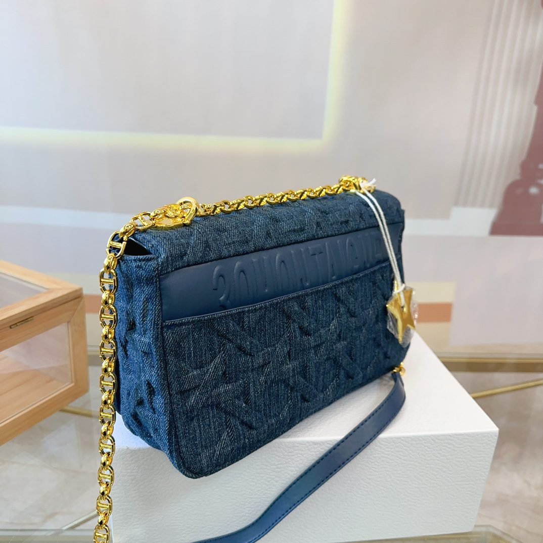 The handbag is carefully crafted from cowhide leather, with signature wicker stitch detailing for stitching. The material is soft, and the flip cover is decorated with a retro gold finish metal “CD” buckle. It is a small style, paired with a detachable iconic “CD” chain shoulder strap, which can also be replaced with embroidered wide shoulder straps, making it more elegant and fashionable. Whether it’s daily styling or dinner parties, it’s easy to handle. Flip open and close with knob style “CD” buckle. The back of the buckle features a “30 Montaigne” embossed logo. The detachable and adjustable “CD” chain link shoulder strap is paired with a military style “Christia n Dior” buckle. The internal zipper pocket and patch pocket on the back can be carried by hand, shoulder or crossbody