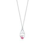Tiffany silver necklace paired with pink heart-shaped pendant,