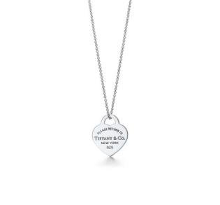 Tiffany silver necklace paired with pink heart-shaped pendant,