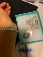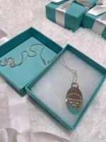 The product is a necklace from Tiffany&CO, known for its iconic brand logo “Tiffany&CO NEW YORK” and exquisite craftsmanship design. The main body of the necklace is a slender silver chain, and the end of the chain is cleverly connected to a circular ring, increasing the overall smoothness and fashion sense.