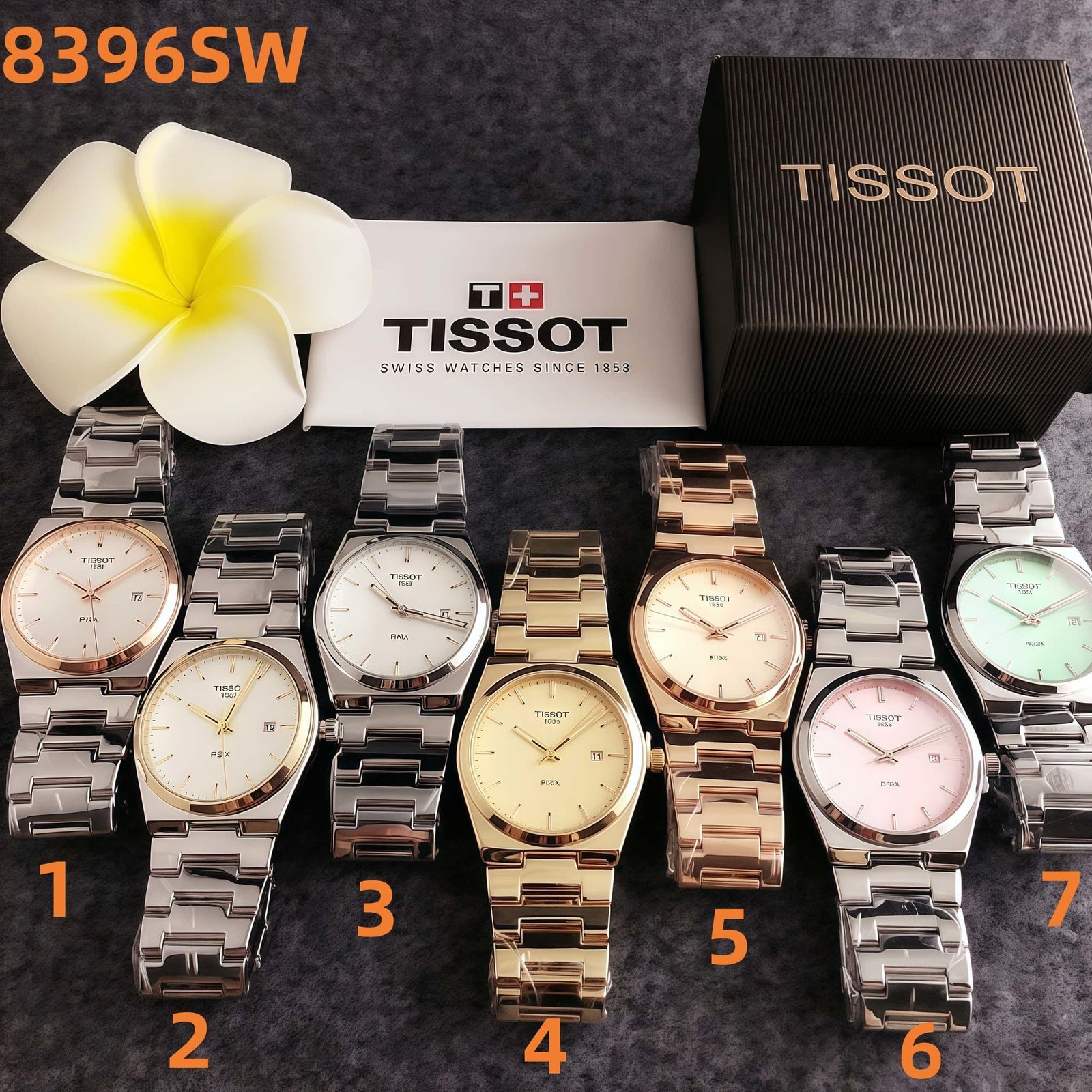 Tissot 8396SW series watches embody Swiss watchmaking excellence since 1853. With a variety of dial colors like white, beige, pink, and mint green, paired with sleek stainless – steel bracelets in tones such as silver, gold, and rose gold, these timepieces blend classic design with modern charm. Perfect for any occasion, they add a touch of sophistication to your wrist.