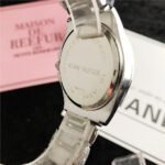 ank Française watch, small model, quartz movement. Steel case. Faceted crown in steel decorated with a synthetic cabochon-shaped spinel. Silvered