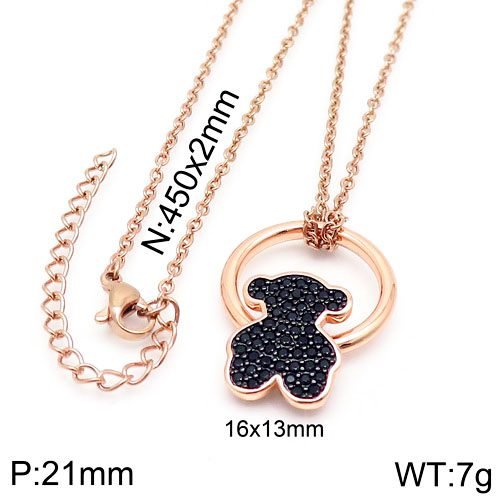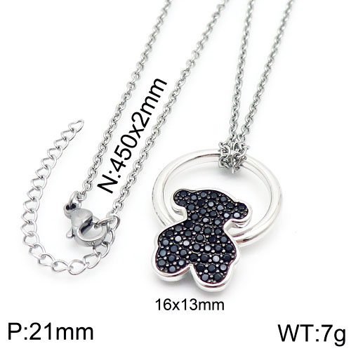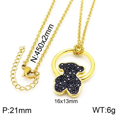 Our 2024 new stainless steel cute little bear black necklace pendant is made of high-quality stainless steel material, ensuring its durability and giving it a unique metallic luster. The design of the teddy bear is cute and playful, and the black tone adds mystery and fashion sense, making the entire pendant simple yet personalized. Paired with exquisite stainless steel chains, it not only ensures a unified overall style but also enhances wearing comfort. The length of the chain is moderate, suitable for wearing in various occasions, whether it is for daily leisure or attending formal occasions, it can be easily controlled. This necklace pendant is not only a jewelry accessory, but also a fashionable item that showcases your personality and taste. Its unique design and elegant shape will make you stand out in the crowd and become the focus of attention.