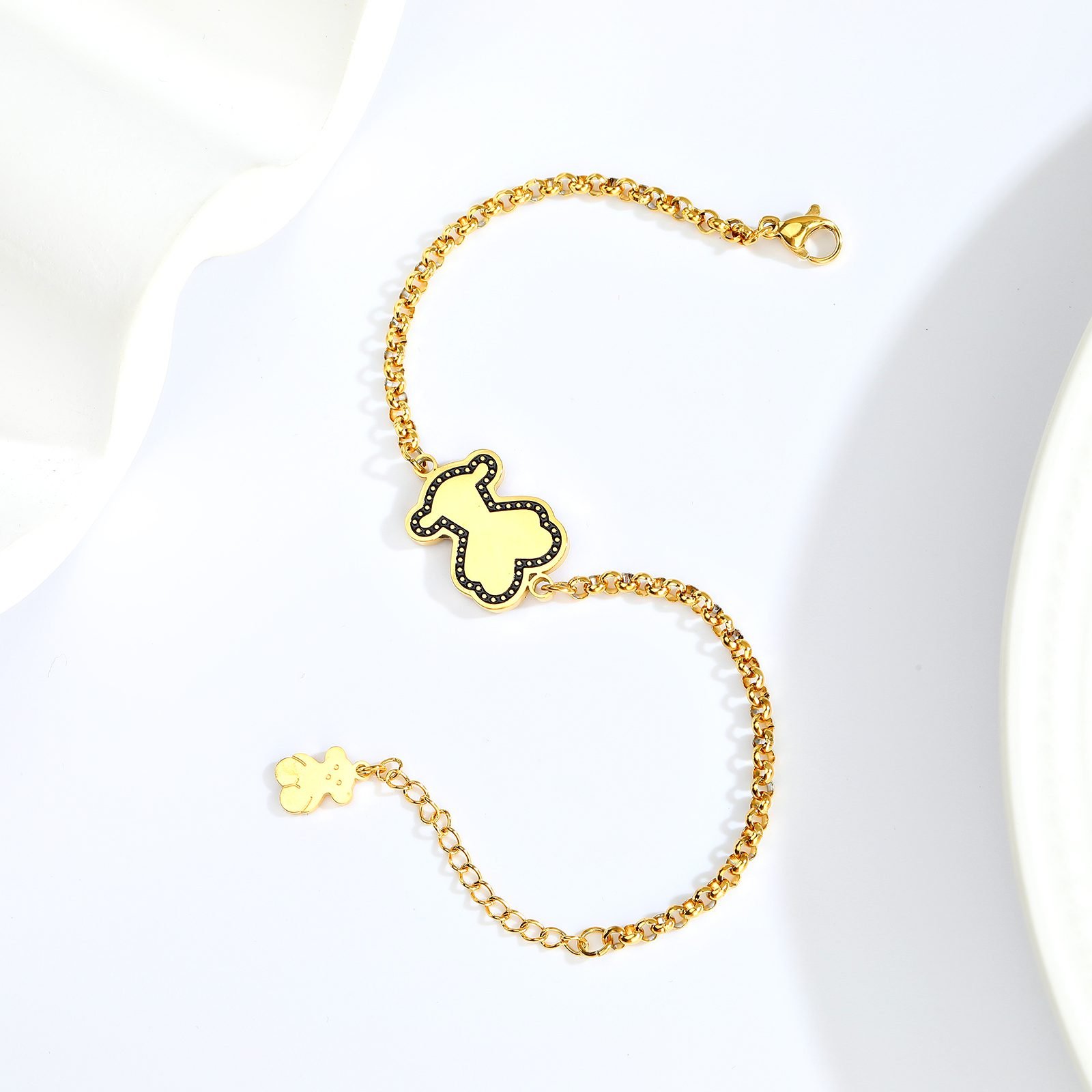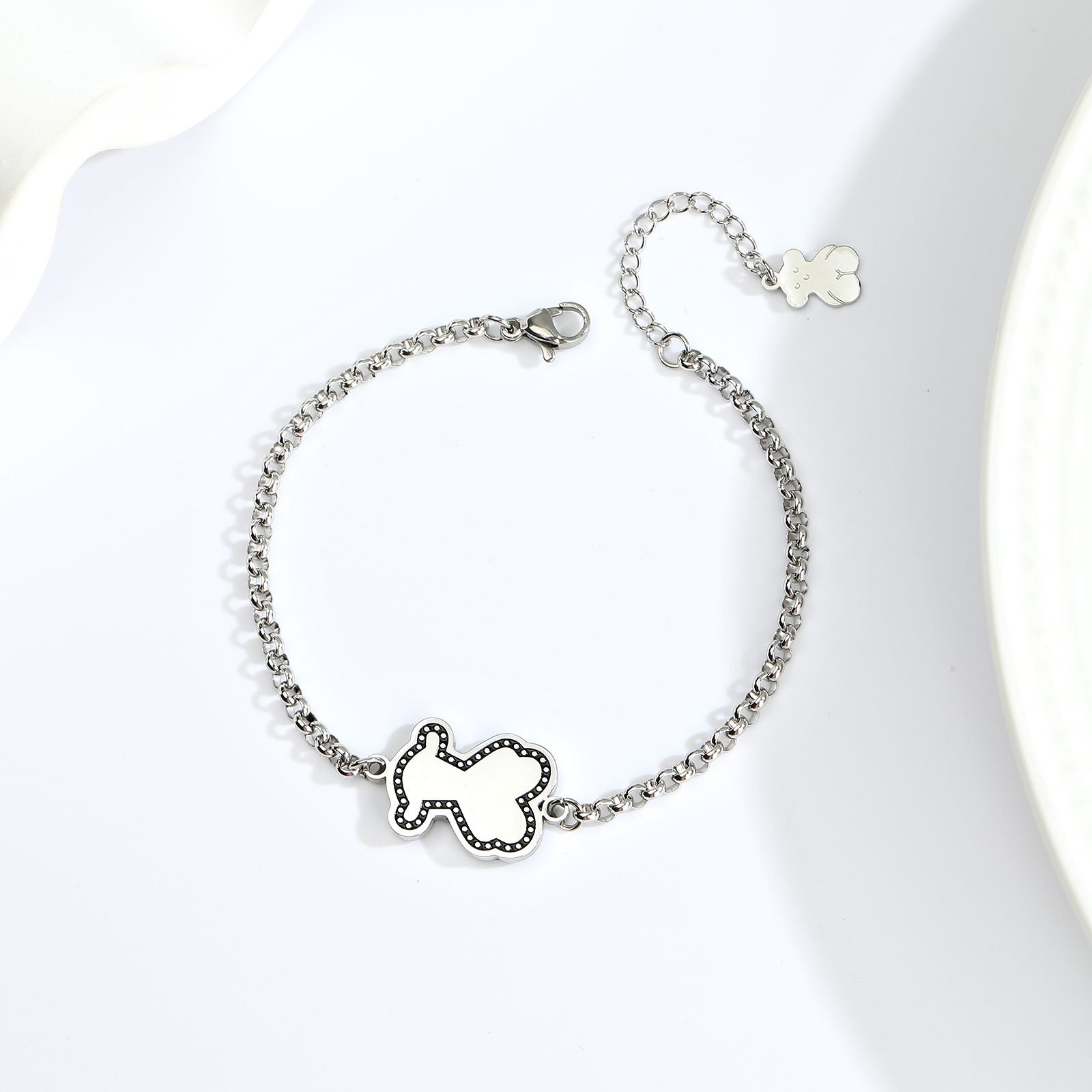 TOUS presents this 925 silver black dotted Spanish bear bracelet with exquisite craftsmanship and infinite creativity, cleverly combining classic and fashionable elements to add a unique and charming charm to your wrist. Material selection: Made of high-quality 925 sterling silver as the base, carefully polished and polished to showcase the pure luster and delicate texture unique to silver. This material not only ensures the durability of the bracelet, but also endows it with a noble yet approachable temperament. Design feature: The highlight of the bracelet lies in the Spanish teddy bear pendant crafted with black dot tracing technique. The bear has a cute and innocent appearance, with a hint of agility and cuteness in its eyes. Its outline is outlined with fine black lines, and the edges are embellished with intricate dot decorations, like twinkling stars in the night sky, adding a sense of layering to the bracelet and endowing it with unique artistic charm. Exquisite craftsmanship: TOUS brand is renowned for its outstanding craftsmanship, and this bracelet is no exception. The application of black line point drawing technique requires extremely high skills and patience, with every detail carefully crafted to ensure the lifelike image of the bear and smooth and natural lines. Unique Style: The design style of this bracelet is simple yet personalized, with a classic combination of black and silver that not only showcases a low-key sense of luxury, but also reveals the wearer’s unique taste and temperament. Whether paired with casual wear or formal attire, it can be easily handled and showcase different styles of charm. Emotional symbolism: As one of the iconic elements of the TOUS brand, the Spanish bear symbolizes purity, happiness, and companionship. This black dotted Spanish teddy bear bracelet further deepens this meaning, symbolizing a pure and happy companionship with the wearer no matter when and where. Applicable occasions: This bracelet is suitable for wearing in various occasions, whether it is daily travel, dating parties, or as a gift for holidays and birthdays, it can become the perfect choice to express your feelings to friends and family. With its unique design and exquisite craftsmanship, every wearer can feel the warmth and care from the TOUS brand.