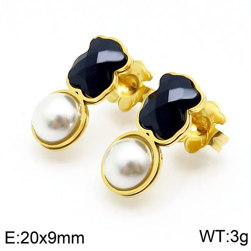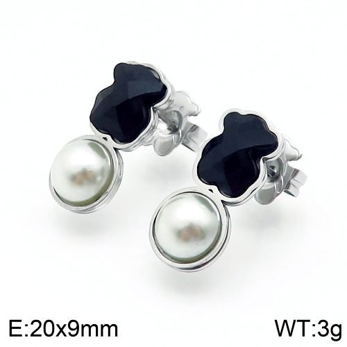 Half silver white round bead, gentle and soft: The bottom of the earring is embedded with a half silver white round bead. This round bead is made of high-quality silver material, with a finely polished surface that presents a warm and jade like luster. It forms a sharp contrast with the black zircon and bear patterns, adding a gentle and soft touch to the earrings, allowing the wearer to showcase their personality charm while also emitting a gentle temperament.