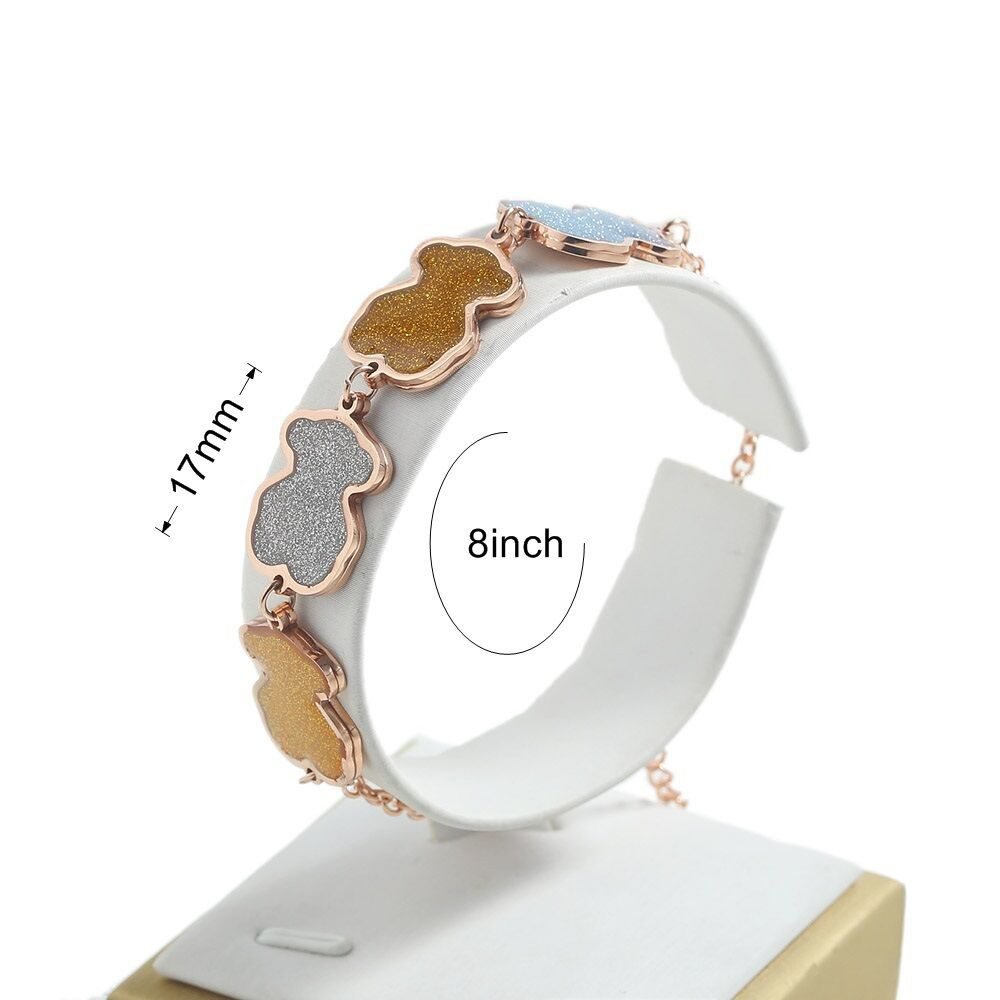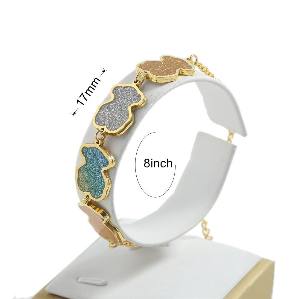 In the fashion world where romance and refinement intertwine, TOUS once again presents a perfect encounter between innocence and elegance with its iconic Spanish bear image – the TOUS 925 silver four-color Spanish bear bracelet, a fashion accessory that combines design aesthetics and emotional symbolism. Material selection: This bracelet is made of high-quality 925 sterling silver, which is warm and delicate, with a natural flowing luster. It not only ensures the comfort of wearing, but also highlights the wearer’s extraordinary taste and style. 925 silver, with its excellent antioxidant and skin friendly properties, keeps this beauty lasting and accompanies you in every important moment. Unique design: The focus of the bracelet is undoubtedly the four colorful and diverse Spanish teddy bear pendants. They represent different personalities and emotions, presented in four fresh tones of blue, pink, yellow, and white, like a bright color in the changing seasons, adding infinite vitality and energy to the wrist. Each little bear has been finely crafted, lifelike, and adorable, as if telling a story about dreams, friendship, love, and hope. Craftsmanship: TOUS uses its exquisite craftsmanship to handle every detail perfectly. The bracelet chain is smooth and elastic, fitting the skin without losing its vitality when worn. Whether for daily wear or special occasions, it can be easily controlled, showcasing the wearer’s unique fashion attitude. Emotional symbolism: TOUS teddy bear, as a symbol of the brand, is not just an accessory, but also a messenger of emotions and blessings. It symbolizes purity, happiness, and infinite possibilities, reminding us to maintain a childlike heart and bravely pursue our dreams. Giving this bracelet to oneself or a loved one is a gift full of love and warmth. Applicable occasions: Whether it’s a casual daily outfit or an elegant look for a dinner party, the TOUS 925 silver four-color Spanish teddy bear bracelet can be the finishing touch of your overall look, making you stand out in the crowd and show off your extraordinary charm. Choosing the TOUS 925 silver four-color Spanish bear bracelet is a commitment to beauty, love, and dreams, making this unique accessory an indispensable companion in your life.