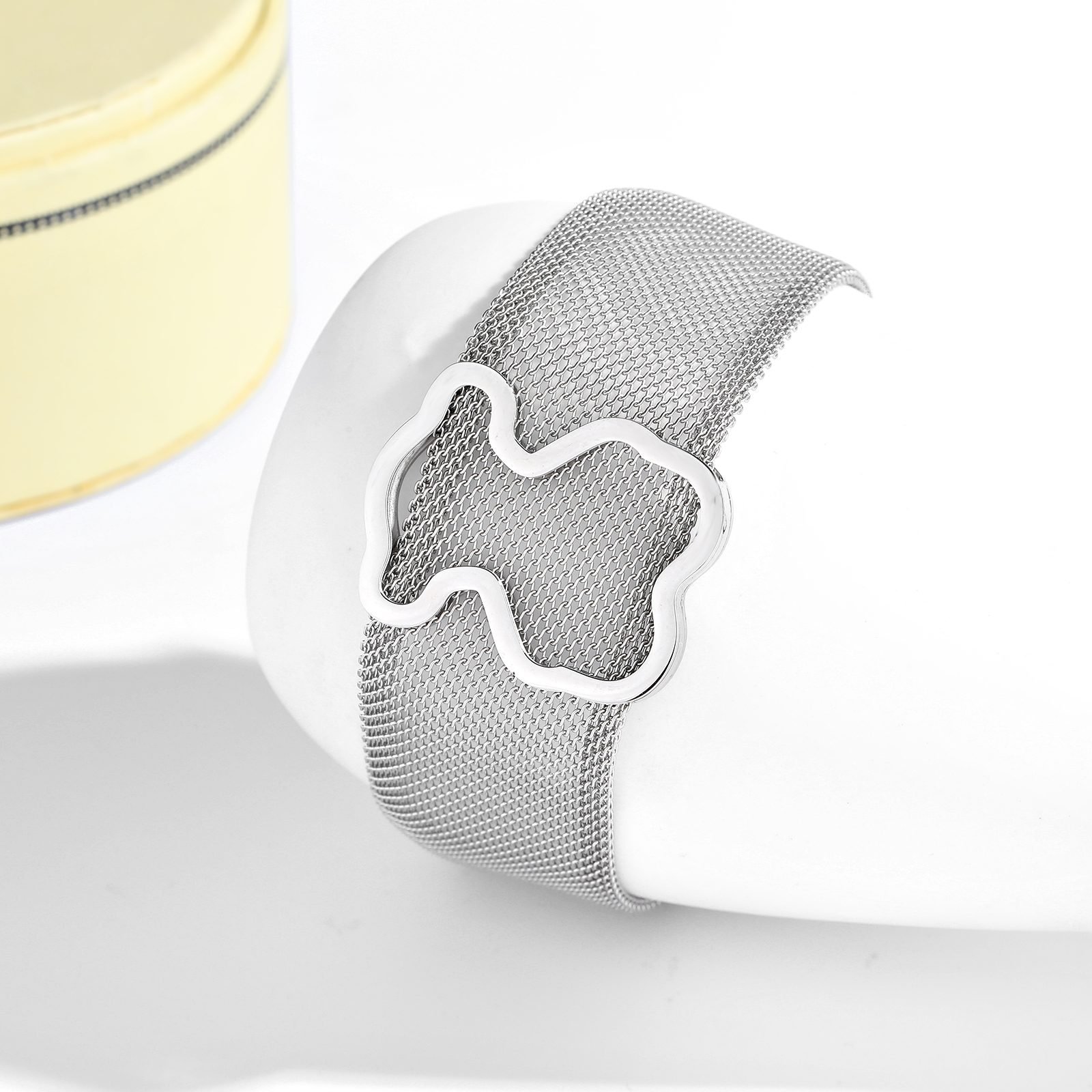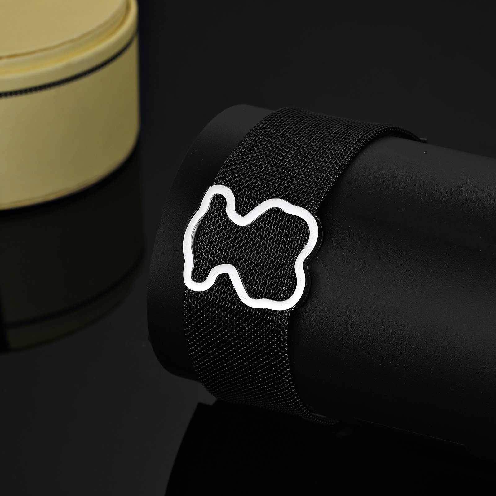 Explore the sweetness and delicacy of the TOUS brand, and we present to you this unique 925 silver frame teddy bear black silver wide bracelet. This bracelet cleverly combines TOUS’s iconic teddy bear elements with modern design aesthetics, creating a perfect collision of fashion and emotional memory. 【 Material Selection 】 925 sterling silver is selected as the main material of the bracelet, ensuring its durability and beauty with its warm luster and excellent texture. The purity and elegance of silver add a touch of extraordinary temperament to the wearer. The highlight of the bracelet lies in its exquisite silver frame, cleverly outlining the silhouette of a cute little bear. As a classic totem of the TOUS brand, the little bear symbolizes innocence, cuteness, and warmth, injecting a strong emotional color into the bracelet. The interior of the frame adopts a black or silver (depending on the specific style) filling design, which forms a sharp contrast with the silver border, highlighting the three-dimensional sense of the teddy bear and adding the fashion sense of the bracelet. 【 Width and Comfort 】 The bracelet adopts a wide design, which not only looks more atmospheric and weighty visually, but also enhances the comfort of wearing. The wide version bracelet can better fit the curve of the wrist, reduce friction, and maintain comfort and pressure free even if worn for a long time. TOUS is known for its excellent craftsmanship, and every detail of this bracelet has been carefully polished and treated. The lines of the silver frame are smooth, and the outline of the teddy bear is clear and recognizable. Every corner is processed to be rounded and smooth, with a non prickly feel. The black or silver filling part is closely integrated with the silver border, showcasing exquisite inlay craftsmanship. This bracelet is suitable for wearing in various occasions, whether it is daily leisure, workplace office, or dinner parties, it can be easily controlled. Its unique design and classic bear elements allow the wearer to showcase their personality while also exuding a gentle and cute aura. Whether paired with a simple T-shirt denim or an elegant dress, it can add a touch of highlight to the overall look. Choose the TOUS 925 silver frame teddy bear black silver wide bracelet, let this sweetness and delicacy accompany you through every unforgettable moment, becoming the perfect display of your fashion taste and personal charm.