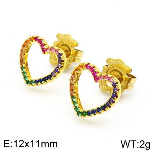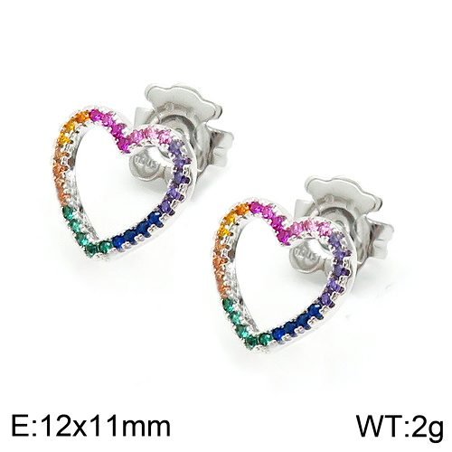Colorful zircon, dazzling: Within the heart frame, multiple colorful zircons are embedded. These zircons have been carefully selected and cut, presenting a variety of bright colors such as red, yellow, blue, etc., like a rainbow. They complement the silver heart-shaped frame, adding a sense of fashion and vitality to the earrings, while also making the overall design more colorful and unforgettable.