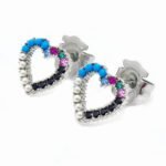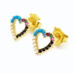 Colorful zircon, dazzling: Within the framework of love, multiple carefully selected colored zircons are embedded. These zircons are finely cut and inlaid, presenting a brilliant and colorful light, like the brightest stars in the night sky, shining with charming radiance. Different colored zircons complement each other, adding a lively and dynamic touch, making the earrings look more lively and interesting overall.