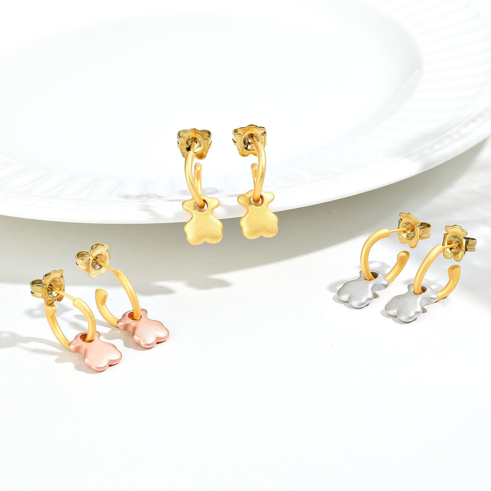 TOUS, With its unique design and exquisite craftsmanship, once again leading the fashion trend, we present to you this 925 silver frosted texture teddy bear hook earring. This earring not only blends the romantic charm of Spain, but also showcases a low-key and luxurious texture through a unique frosted treatment, making every wear an extraordinary display. 【 Material Selection 】 High purity 925 silver is selected as the production material to ensure the purity and comfort of the earrings. Silver itself has excellent antioxidant properties, which can maintain its luster and color for a long time. The application of frosted technology adds a soft and deep touch to this luster, making the earrings more luxurious. 【 Design Features 】 The design inspiration comes from the iconic teddy bear image of TOUS, conveying the beautiful meaning of innocence and luck with its cute and warm image. The earrings adopt a curved hook design, which is both convenient to wear and ensures stability, while showcasing an elegant yet playful style. The bear pattern is finely sandblasted, with soft edges and smooth lines, presenting a unique texture that is unforgettable at first glance. 【 Style Positioning 】 This TOUS 925 silver matte texture teddy bear curved hook earring, with its unique matte texture and exquisite design, easily handles various styles and occasions. Whether it’s a simple casual outfit or an elegant formal dress, it can become a highlight in your ears, adding an irresistible charm to your overall look. TOUS brand always believes that every piece of jewelry carries specific emotions and meanings. This frosted texture teddy bear earring is not only an exquisite accessory, but also a messenger of love and blessings. It represents purity, happiness, and good wishes, whether worn by oneself or given to family and friends, it can accompany this warm emotion. Choose TOUS 925 silver matte texture teddy bear hook earrings, let this romance and innocence from Spain shine brightly by your ears through its unique matte texture, becoming the finishing touch in your fashion outfit.