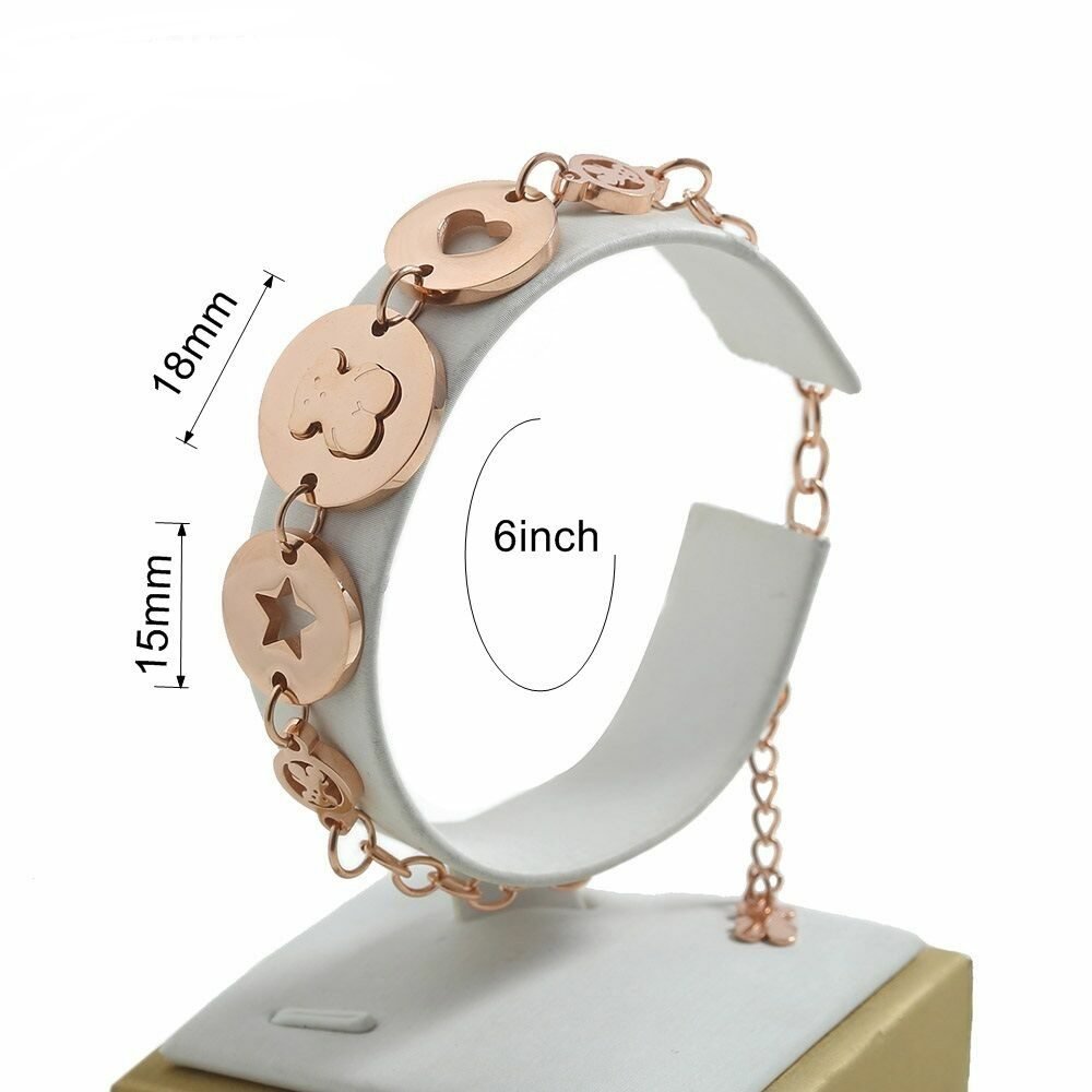 Multi colored circular design: The bracelet is connected with multiple exquisite circular pieces, presented in different colors such as warm yellow, adding rich layering and visual impact to the bracelet. Each color represents different emotions and meanings, allowing wearers to freely match according to their mood and occasion. Hollow out stars, hearts, and bears: The interior of the round card features a hollow out design, carving exquisite patterns of stars, hearts, and bears. These patterns have smooth lines and diverse shapes, showcasing TOUS brand’s ultimate pursuit of details and infinite love for beauty. The hollow design not only gives the bracelet a light and agile texture, but also allows light to penetrate the pattern, creating a unique light and shadow effect, adding a dreamy and romantic touch.